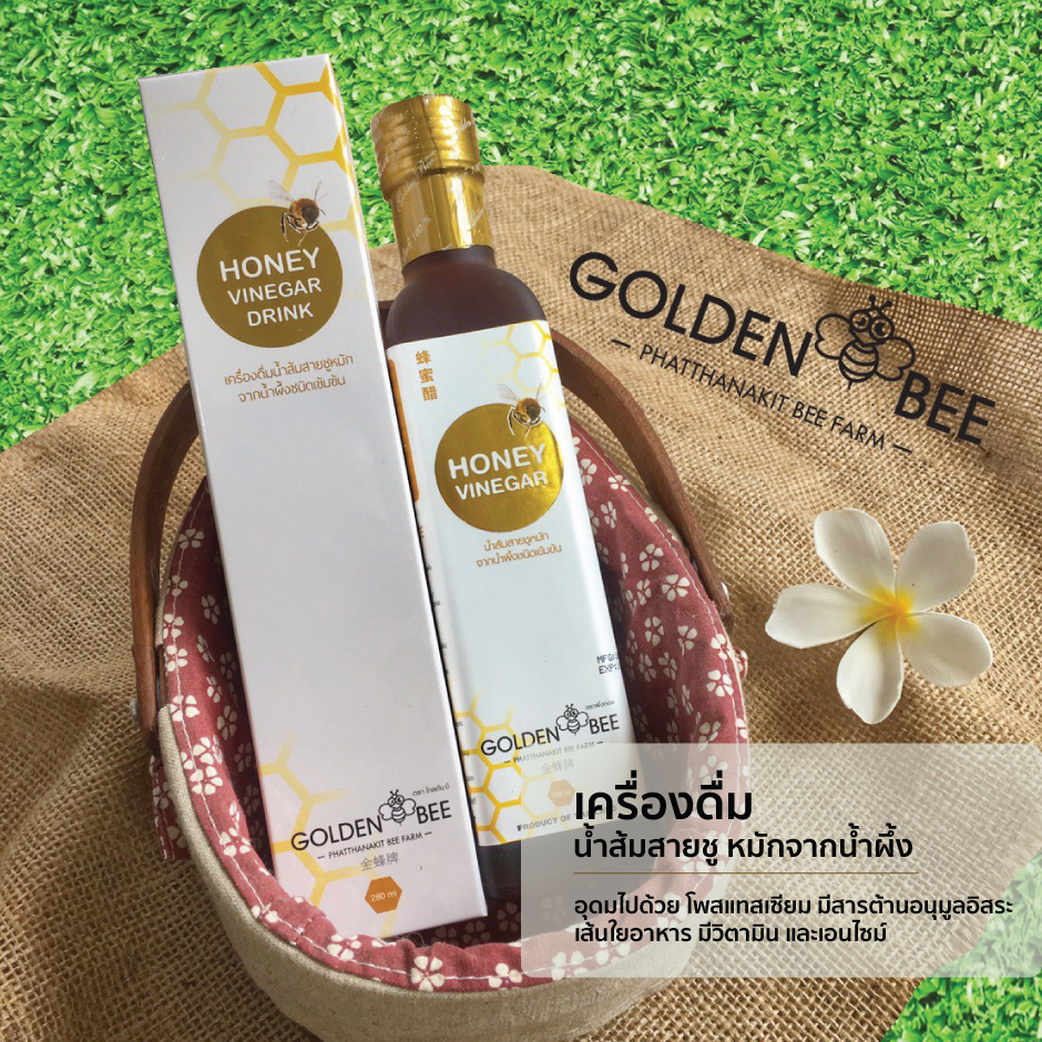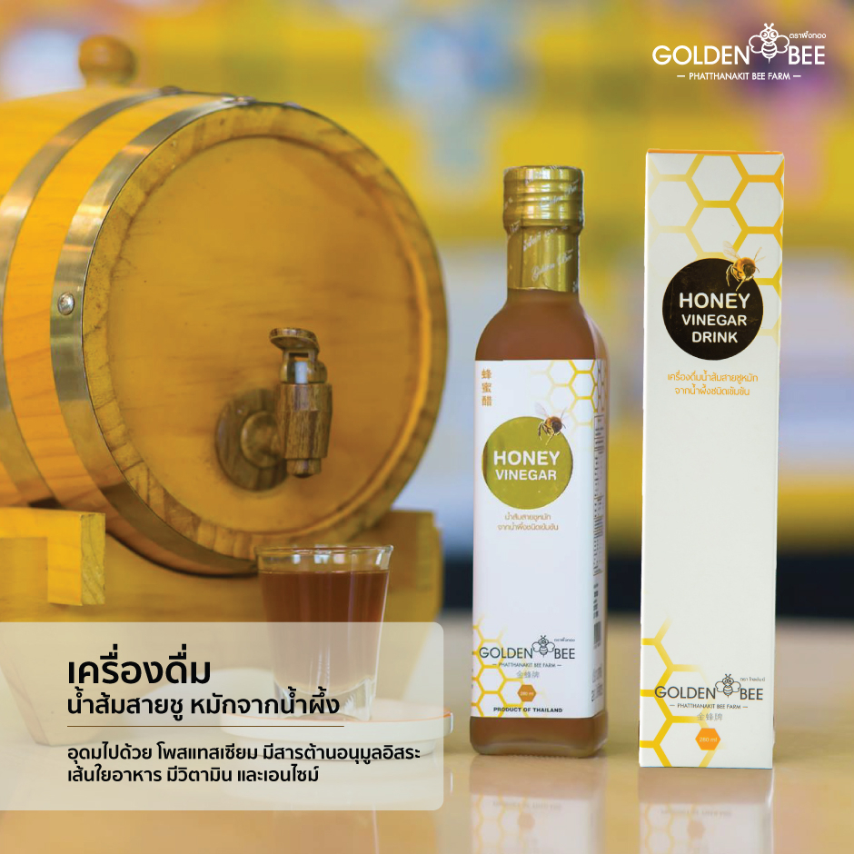 เครื่องดื่ม น้ำส้มสายชู หมักจากน้ำผึ้ง Honey Vinegar ขนาด 280 ml. แบรนด์ Golden Bee