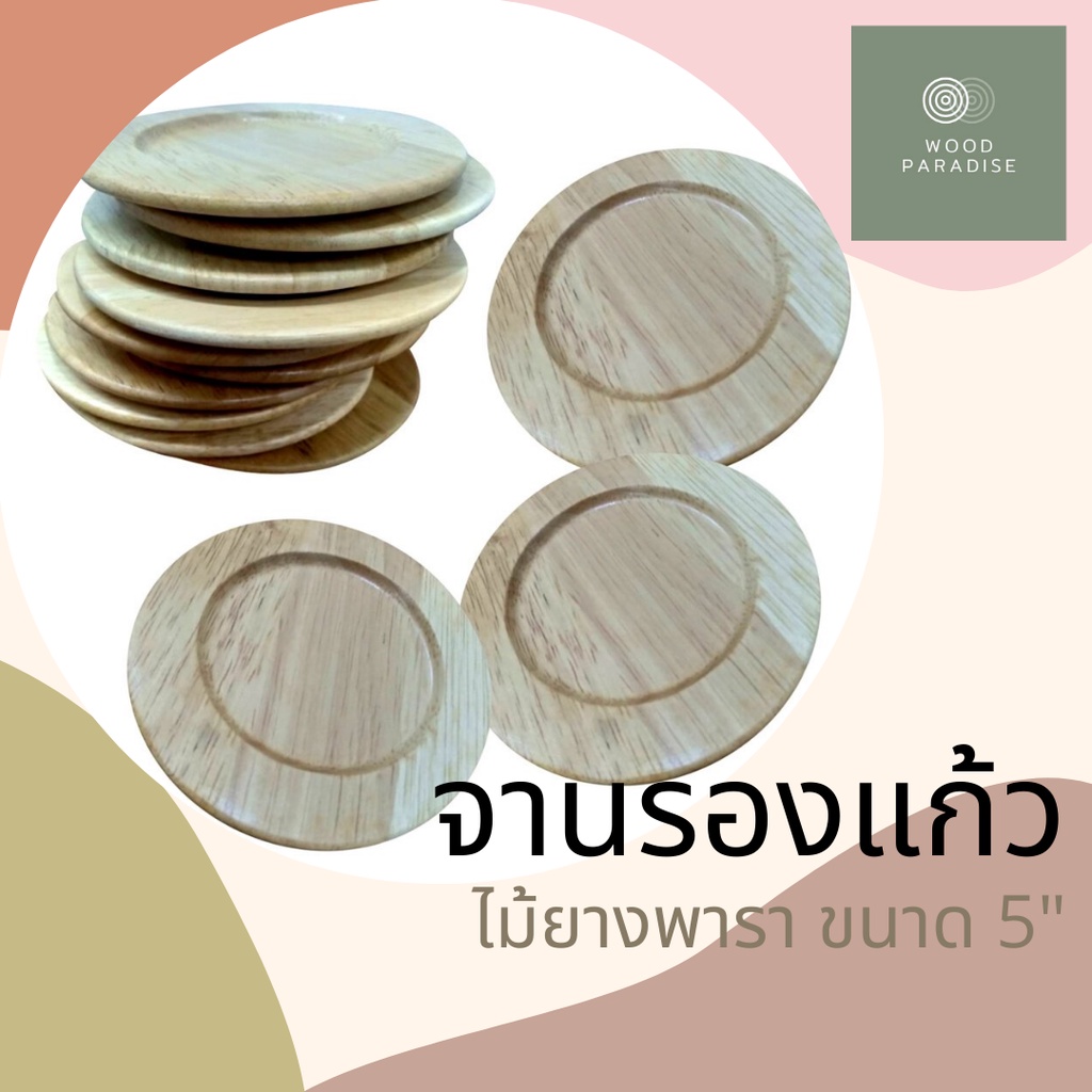 🔥🔥 พร้อมส่งทันที !! จานรองแก้วไม้ จานไม้มินิมอล ขนาด 5 นิ้ว จากไม้ยางพาราแท้