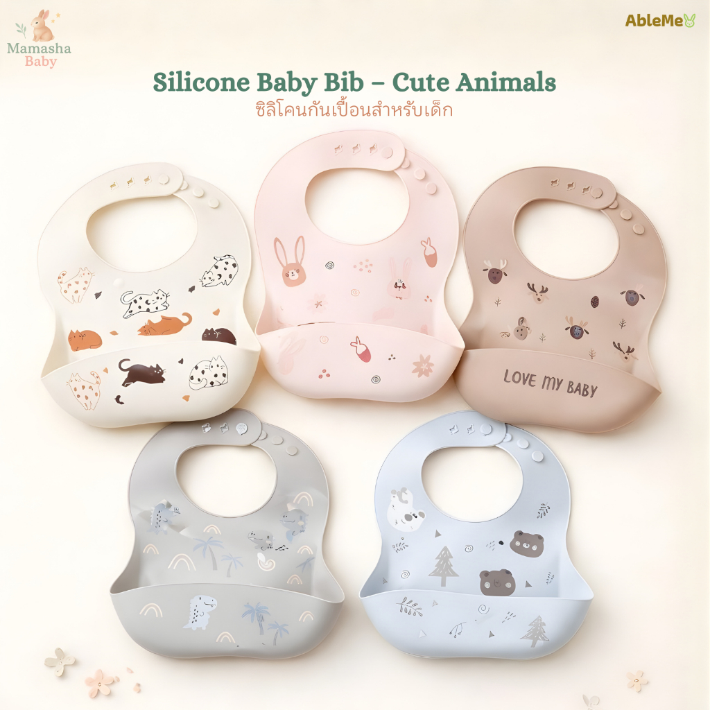 Ableme กันเปื้อนซิลิโคนสำหรับเด็ก ผ้ากันเปื้อนเด็ก ลายการ์ตูน ลายแมวน้อย ลายสัตว์น่ารัก