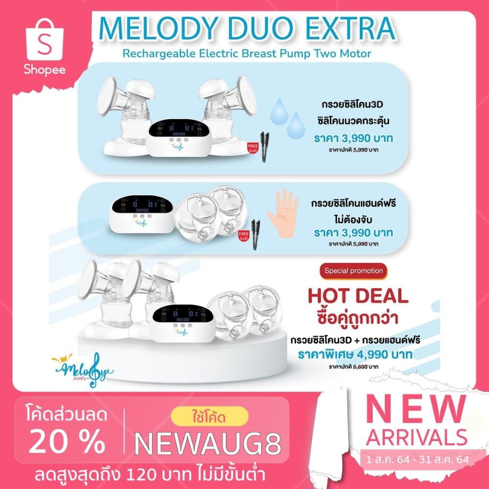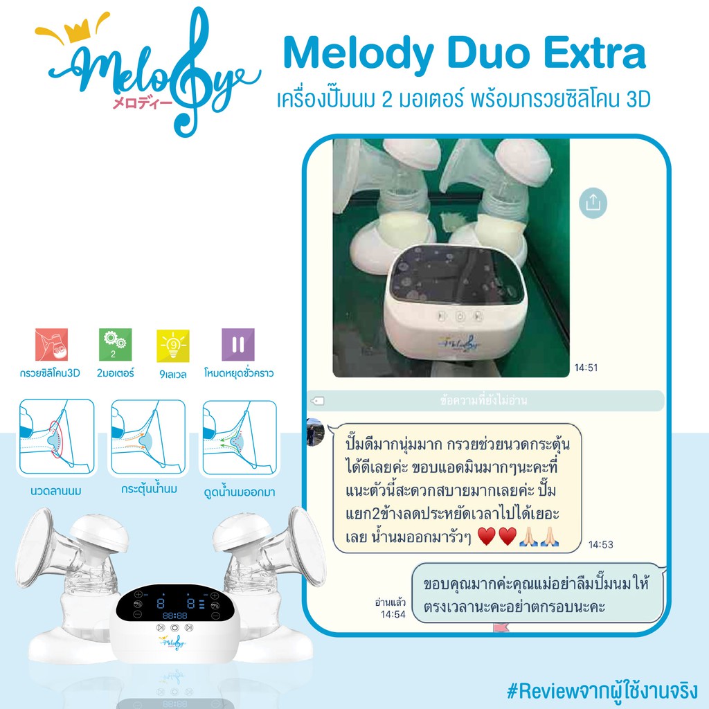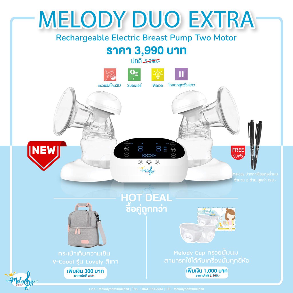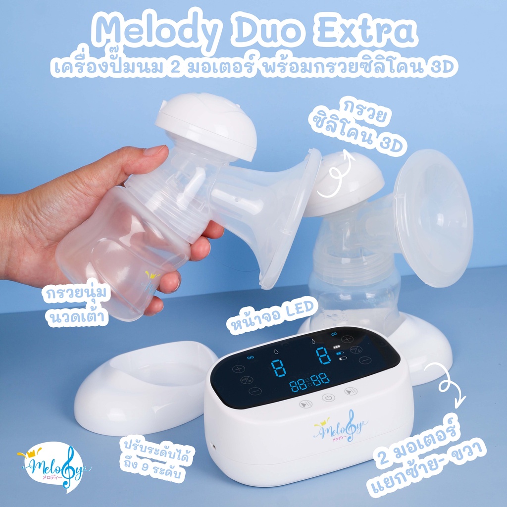 Melody Duo Extra เครื่องปั๊มนม 2 มอเตอร์ กรวยซิลิโคน3D