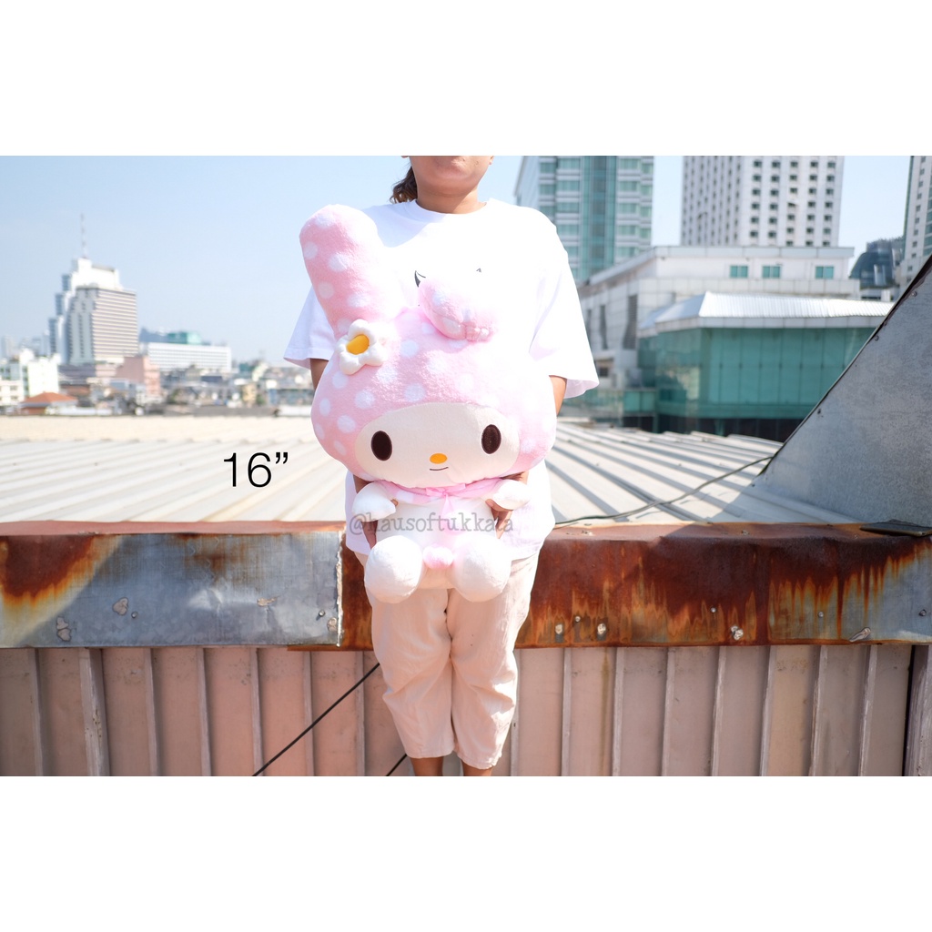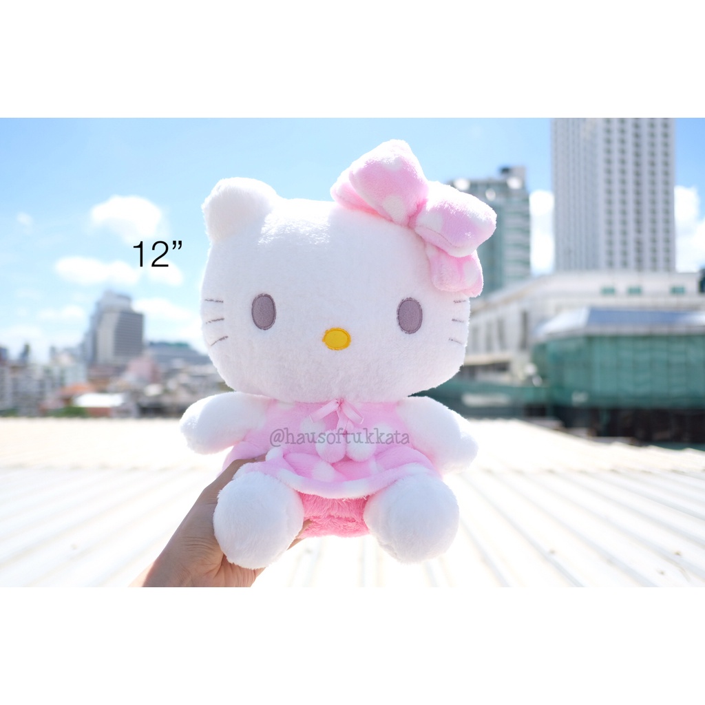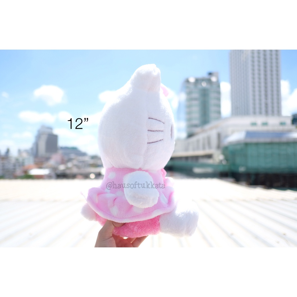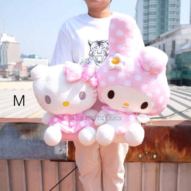 ตุ๊กตา Kitty คิตตี้ & My Melody มายเมโลดี้ ท่านั่ง ชุดชมพูจุดขาว S/M/L Sanrio ซานริโอ้ ซานริโอ