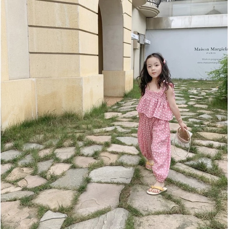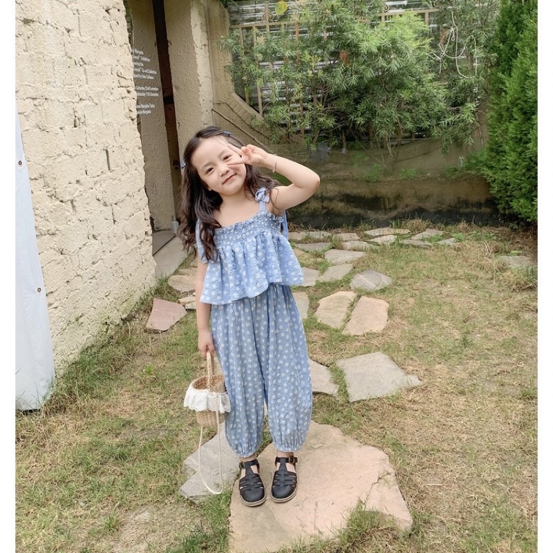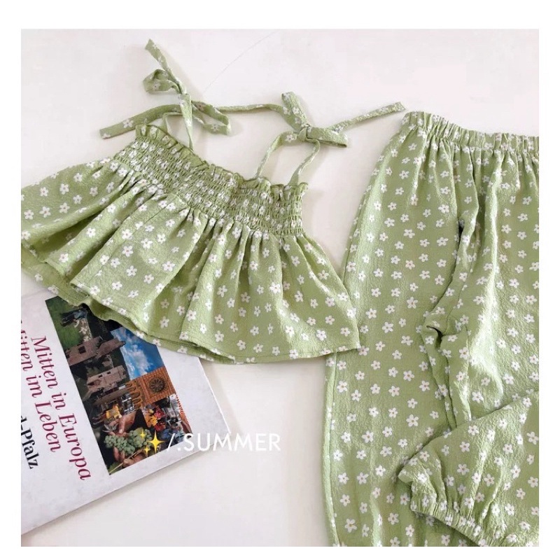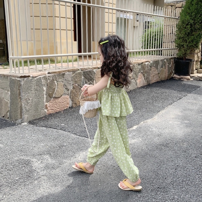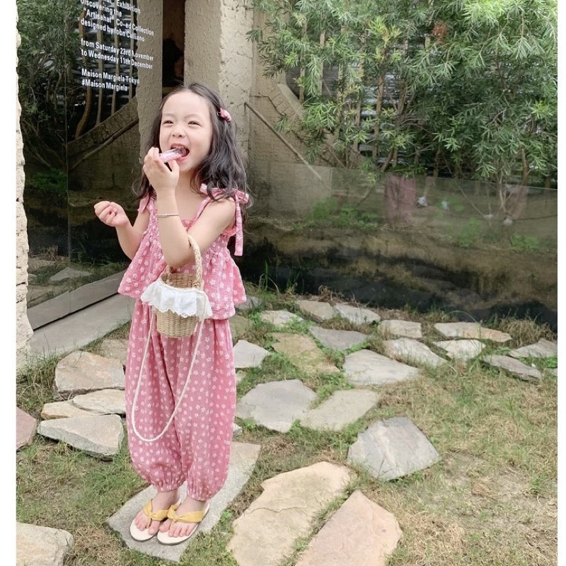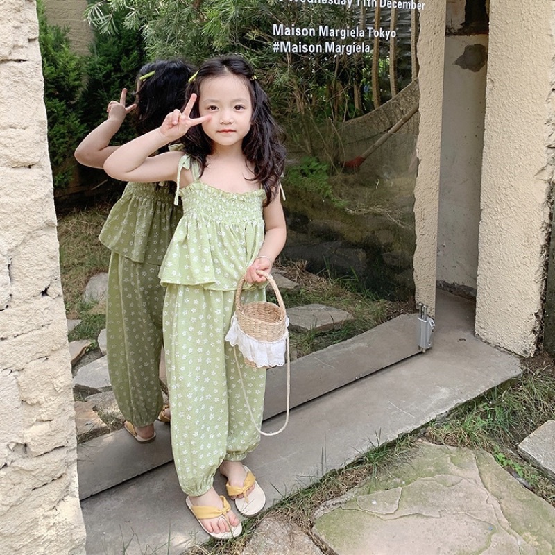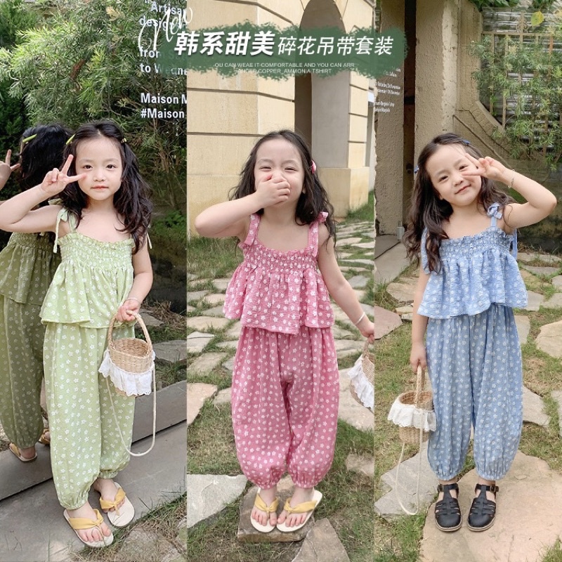 ชุดเซ็ตเด็กผู้หญิง🎀ชุดเซ็ทเด็ก🎀พร้อมส่ง🎀เสื้อสายเดี่ยว+กางเกงเอวยางยืดลายดอกไม้น่ารัก
