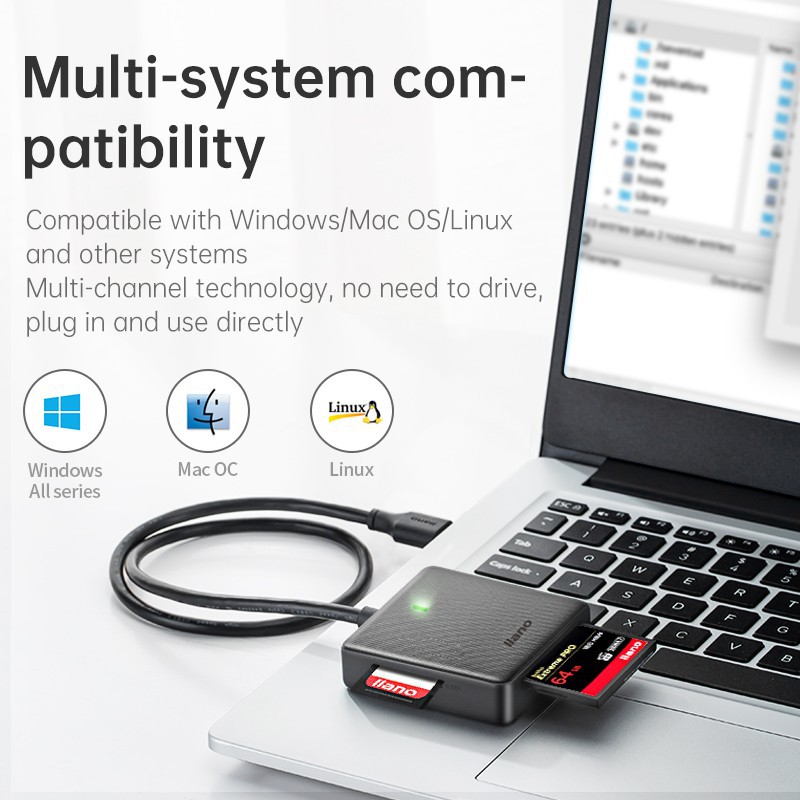 🔥ส่งไวจากไทย🔥Llano 4 In 1 เครื่องอ่านการ์ด Sd / Tf / Ms / Cf Usb 3.0 พร้อมตัวแปลง Type - C: USB 2.0