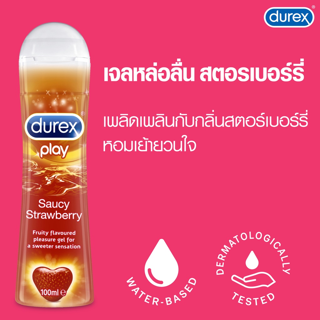 ดูเร็กซ์ เจลหล่อลื่น เพลย์ ซอสซี่ สตรอเบอร์รี่ 100 มล. รวม 2 ขวด Durex Play Strawberry Lubricant Gel 100ml x2