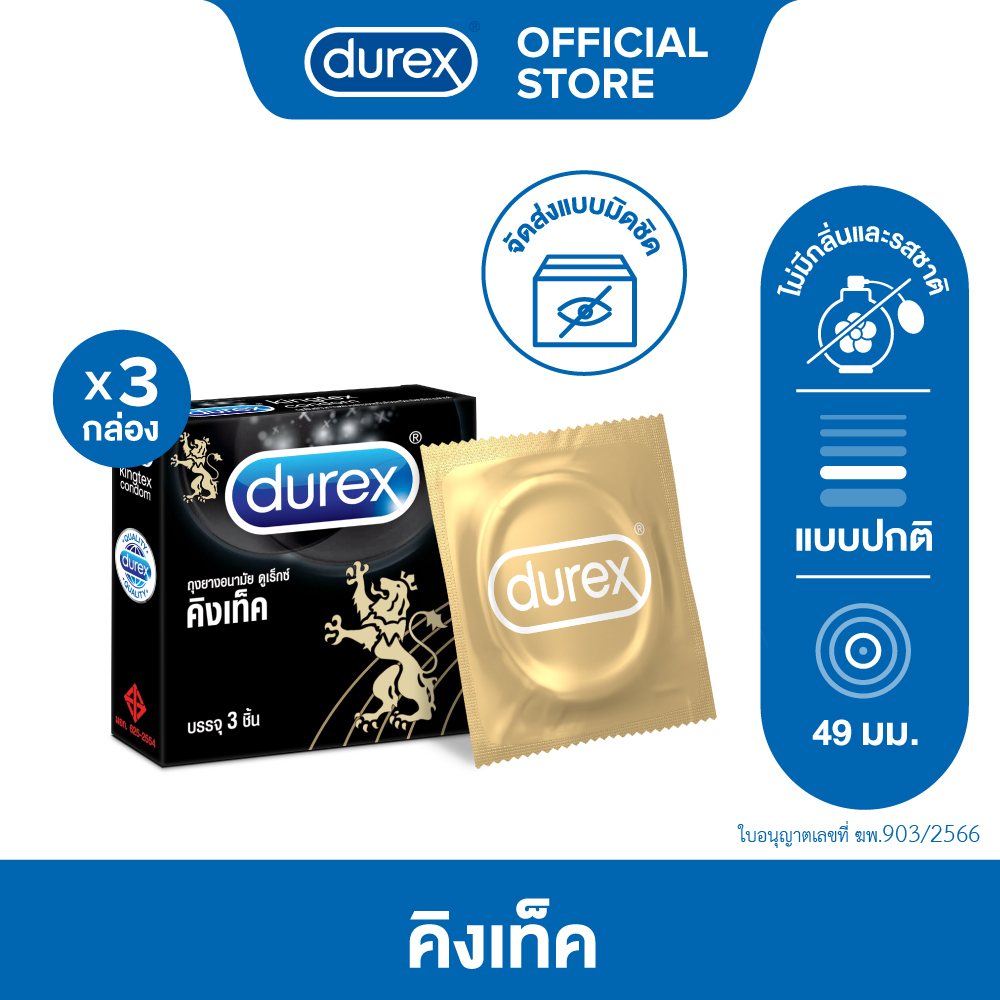 ดูเร็กซ์ คิงเท็ค ถุงยางอนามัยแบบมาตรฐาน ผิวเรียบ ถุงยางขนาด 49 มม. 3 ชิ้น x 3 กล่อง Durex Kingtex Condom 3,s x 3 boxes