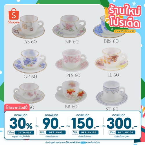 PEARL แก้วเนื้อมุก ถ้วยกาแฟ จานรอง (รหัส 60)