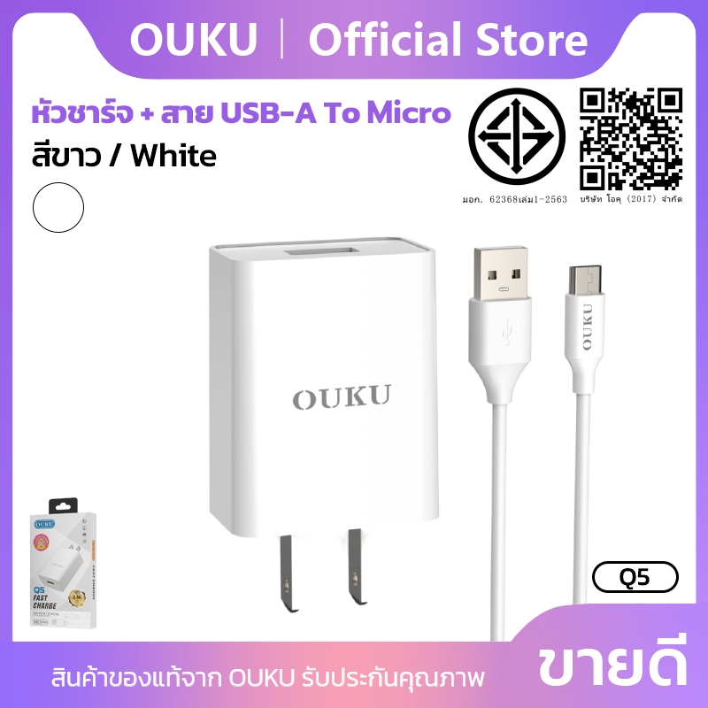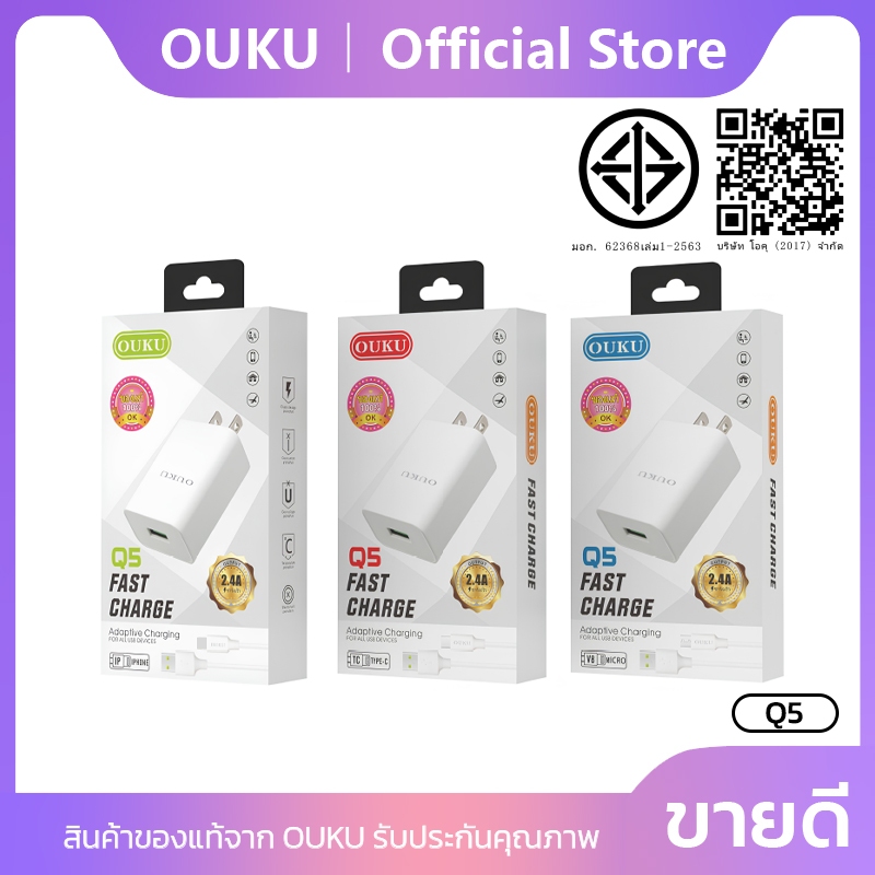 OUKU Q5ชุดชาร์จ1USB 2.4A FAST CHARGEหัวชาร์จพร้อมสาย ยาว1เมตร สำหรับ Type C/Micro พร้อมส่ง