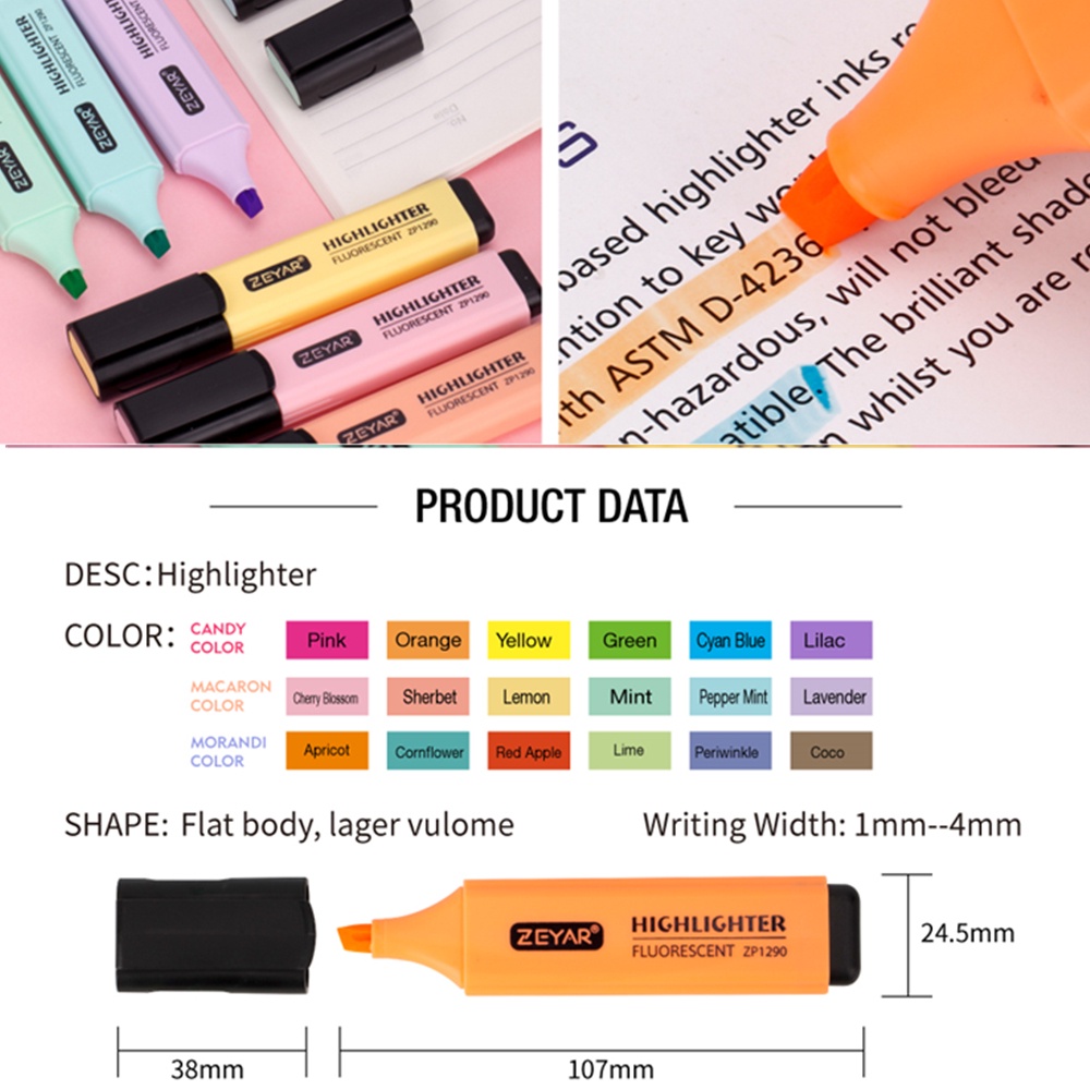 ปากกาเน้นข้อความ พาสเทล มีให้เลือก 18 สี