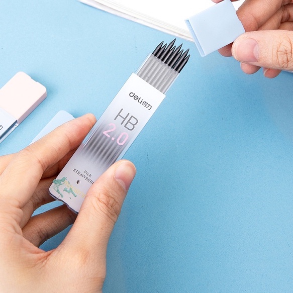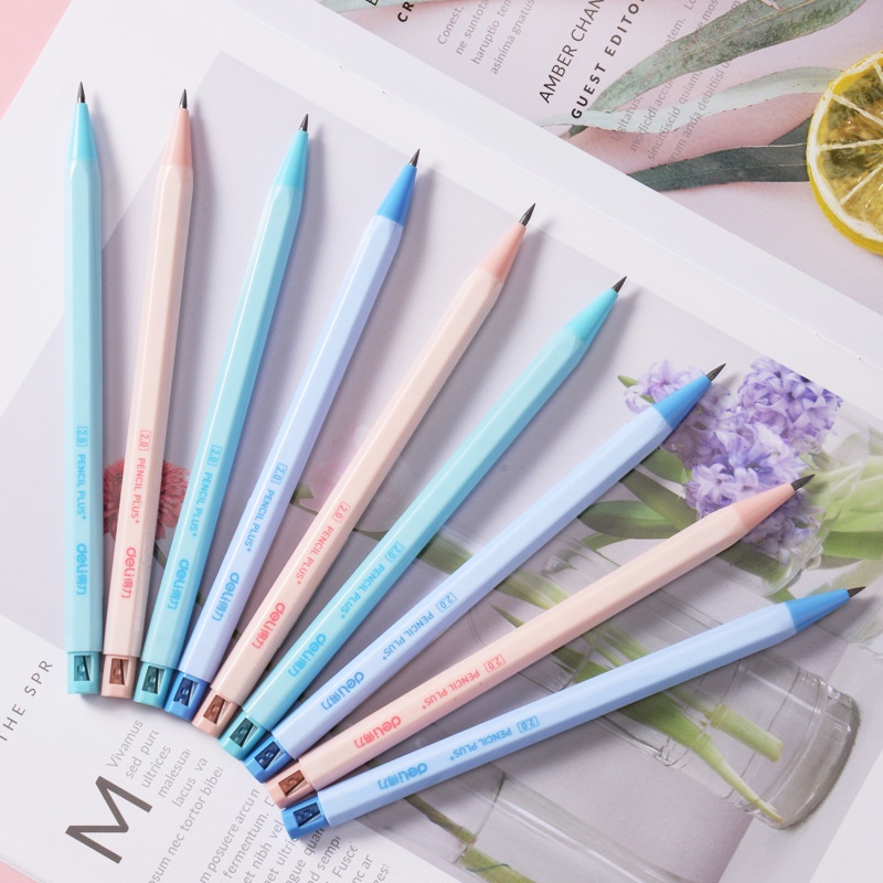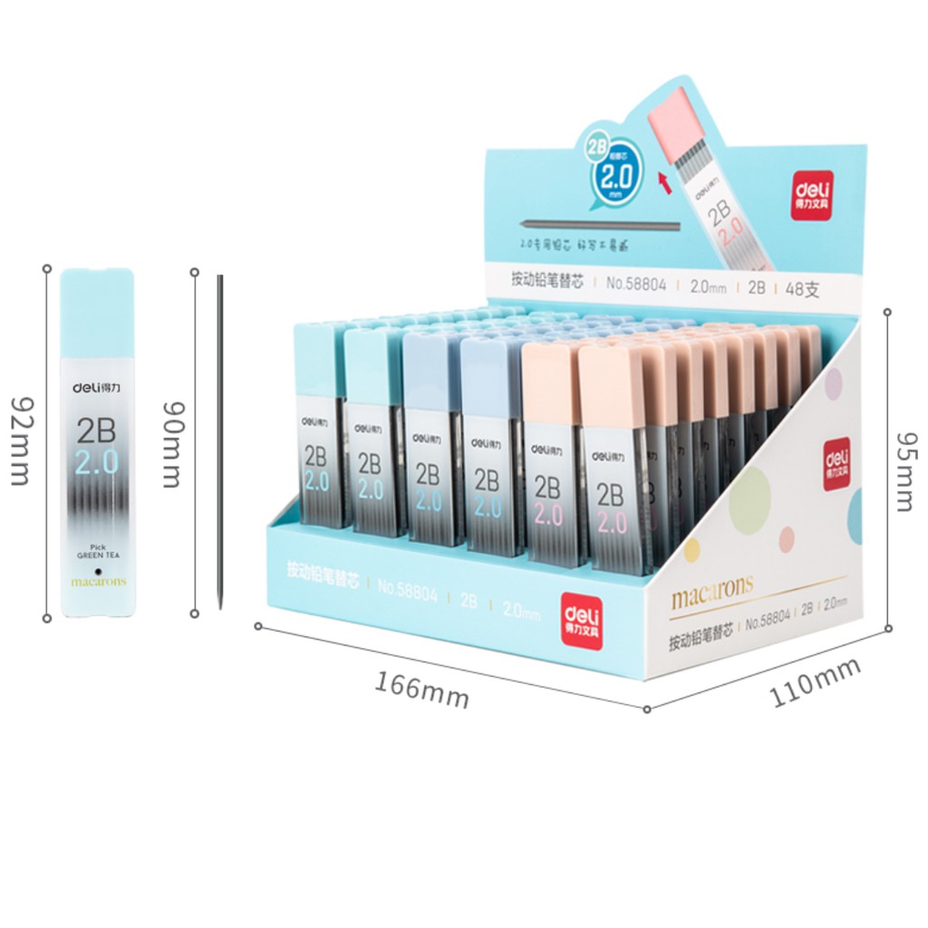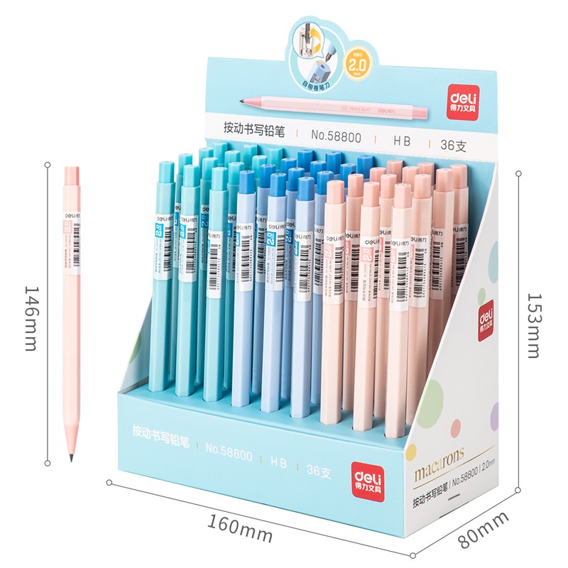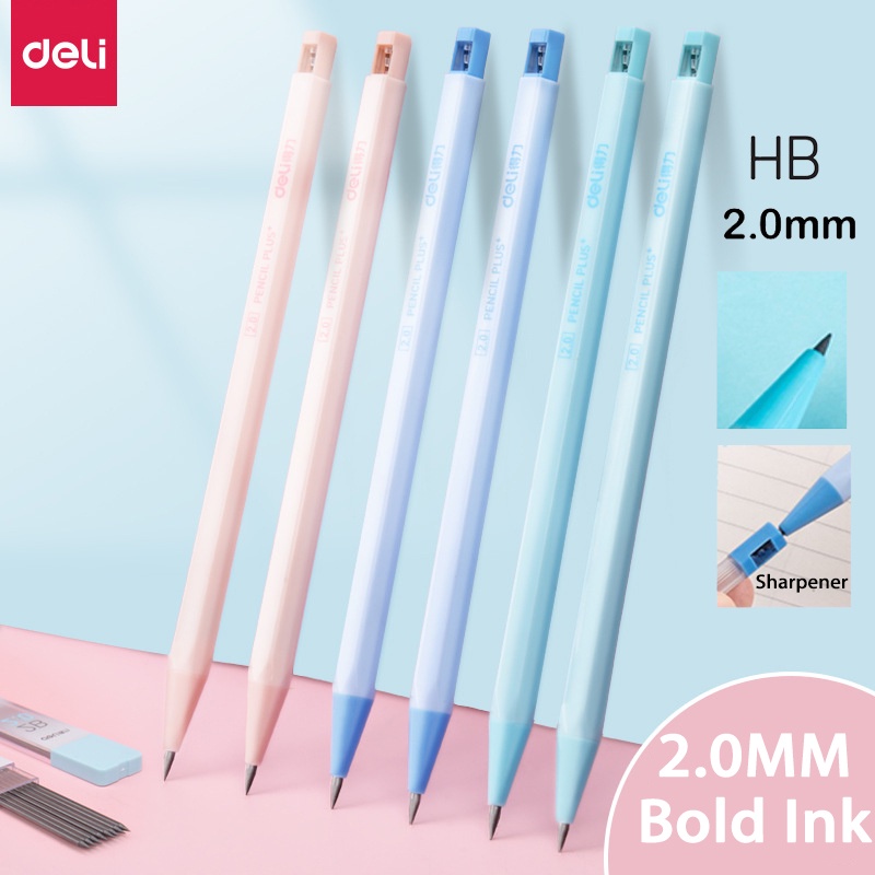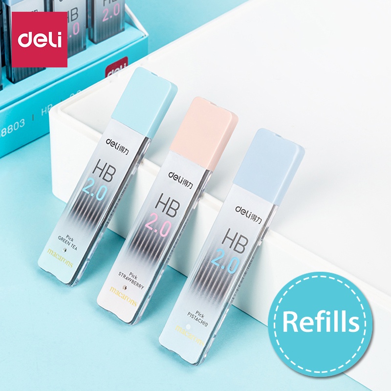 Deli Macaroon ดินสอกด 2.0 มม. HB พร้อมไส้ดินสอ HB 2B สําหรับโรงเรียน สํานักงาน