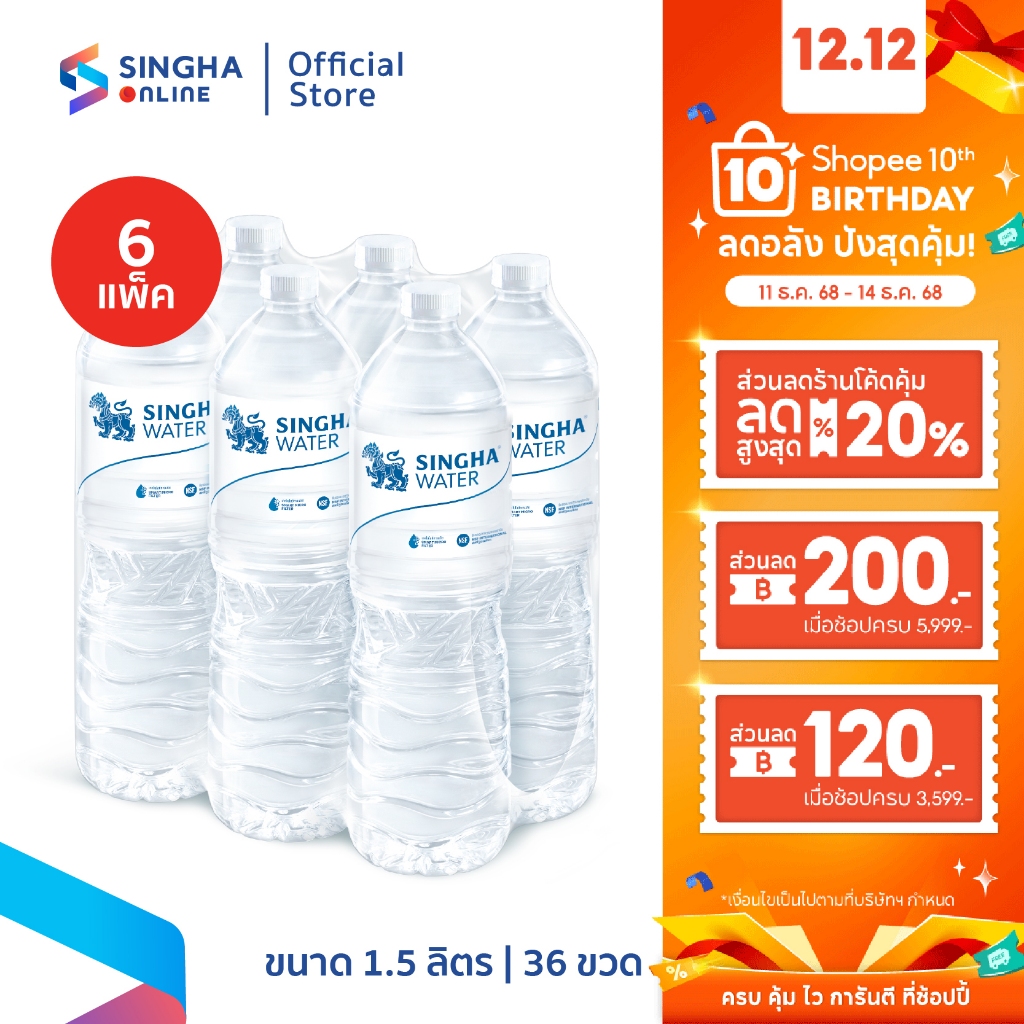 [ส่งในกทม.และปริมณฑล อยุธยา เชียงใหม่ ลำพูน] น้ำดื่มสิงห์ 1.5 ล. จำนวน 6 แพ็ค รวม 36 ขวด