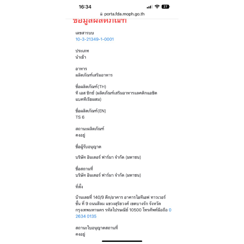 Interpharma TS6 45 ซอง