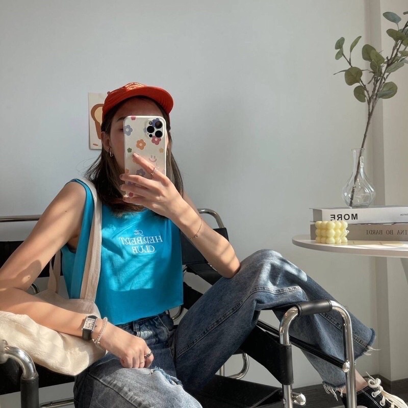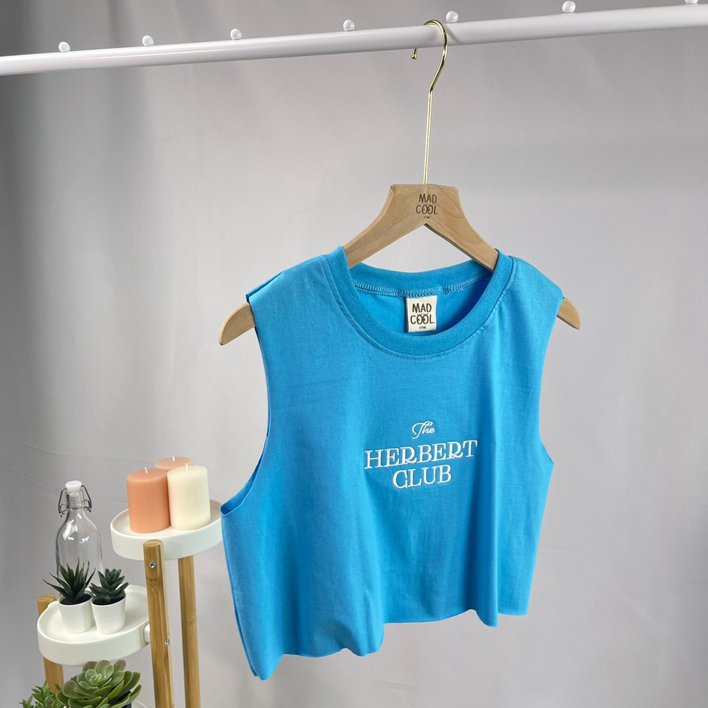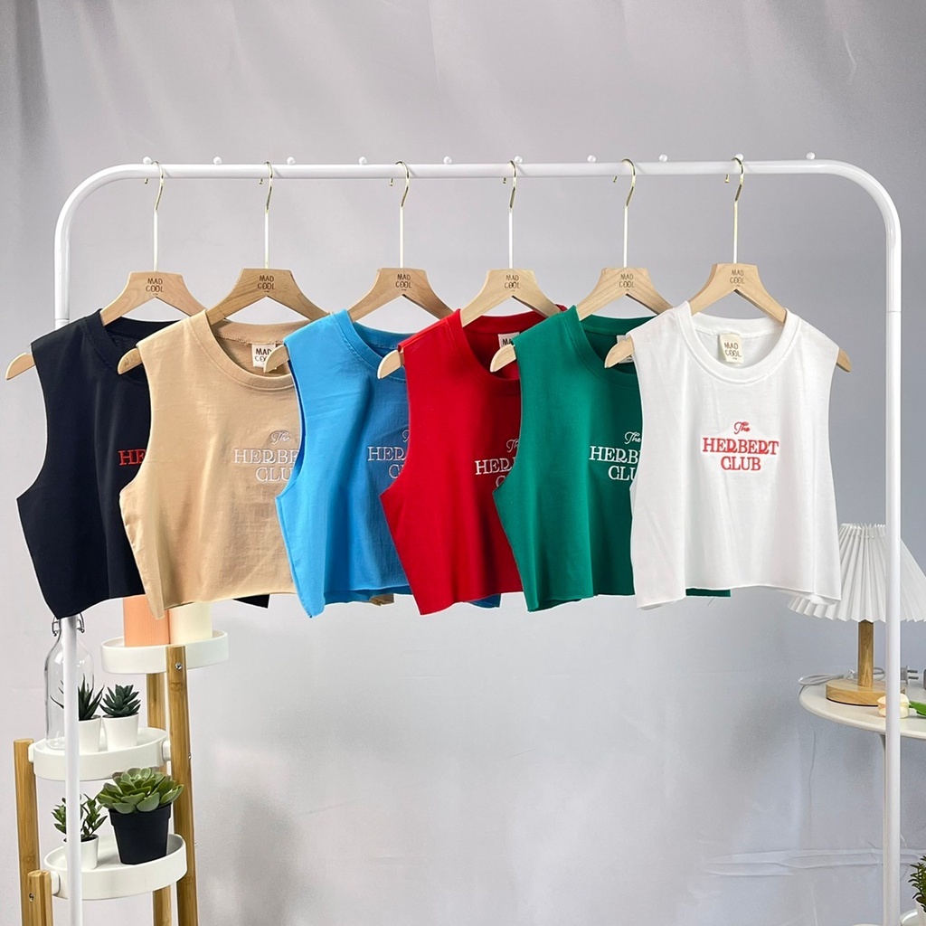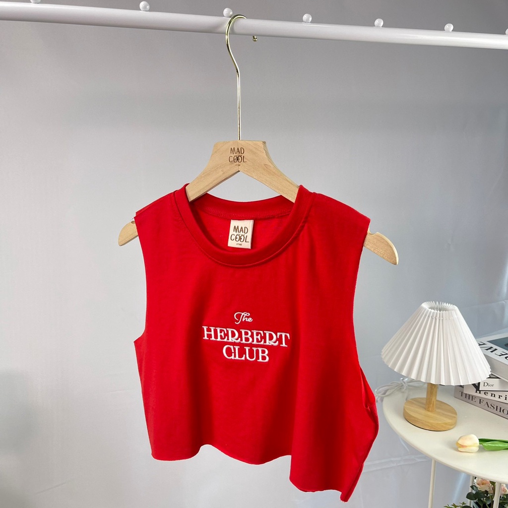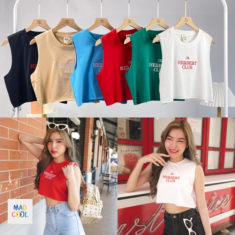 🦖💖 [พร้อมส่ง/ขายส่ง] MADCOOL.store | เสื้อยืดครอปแขนกุดลาย THE HERBERT CLUB