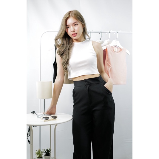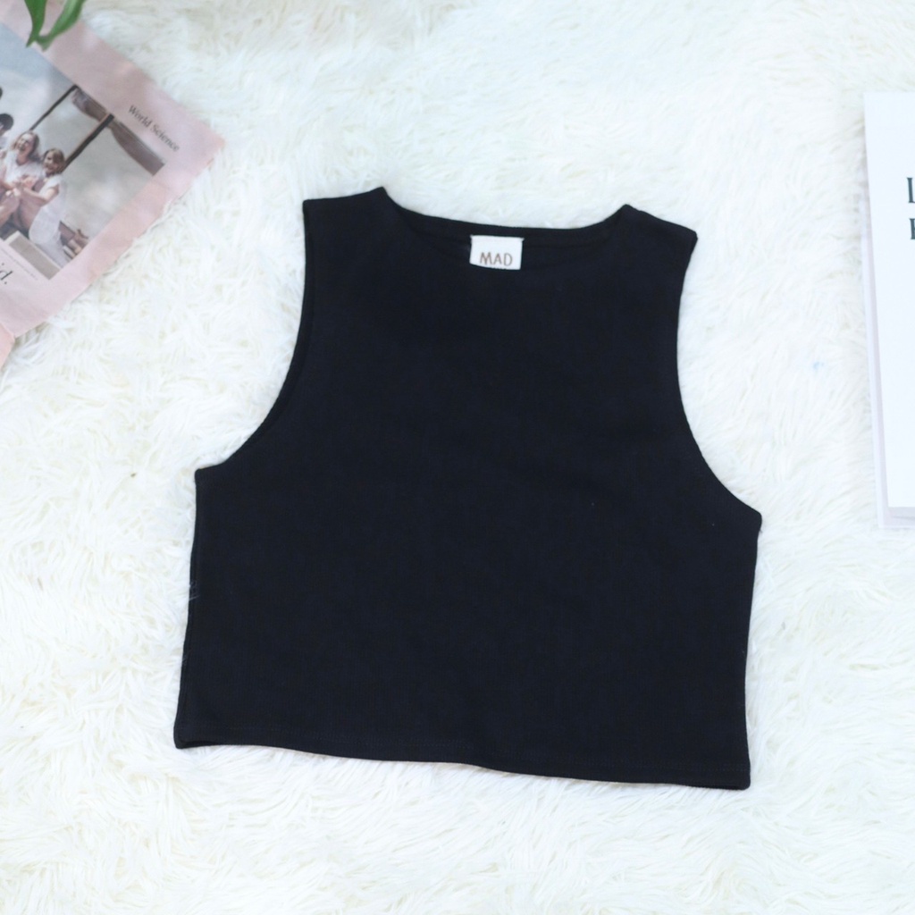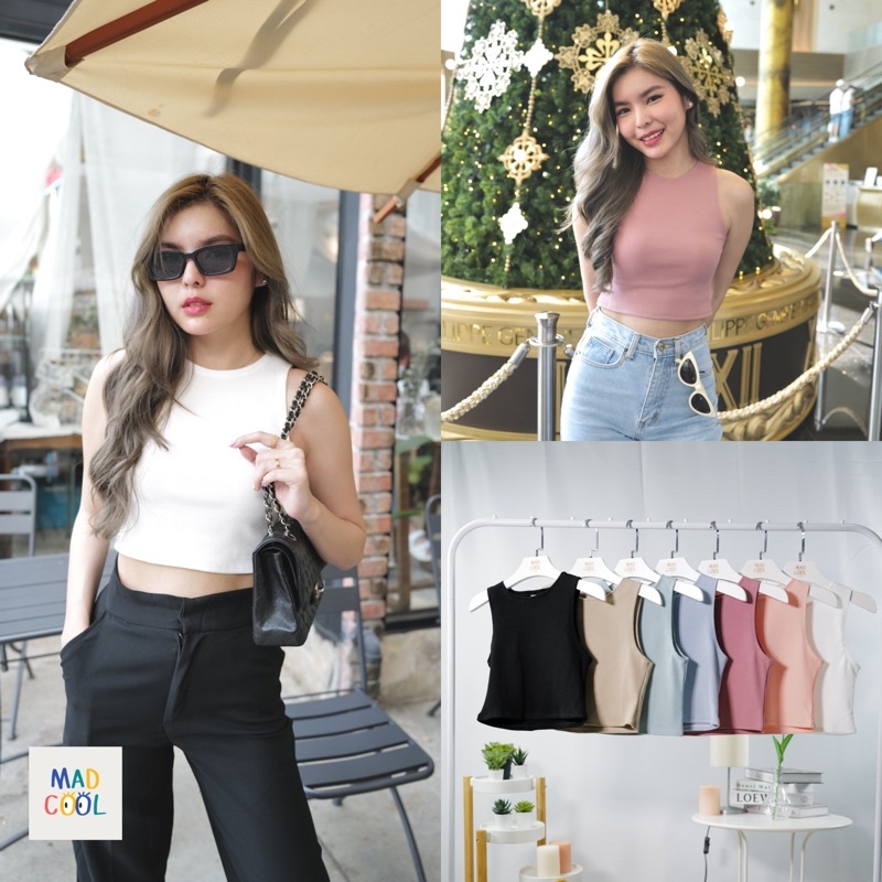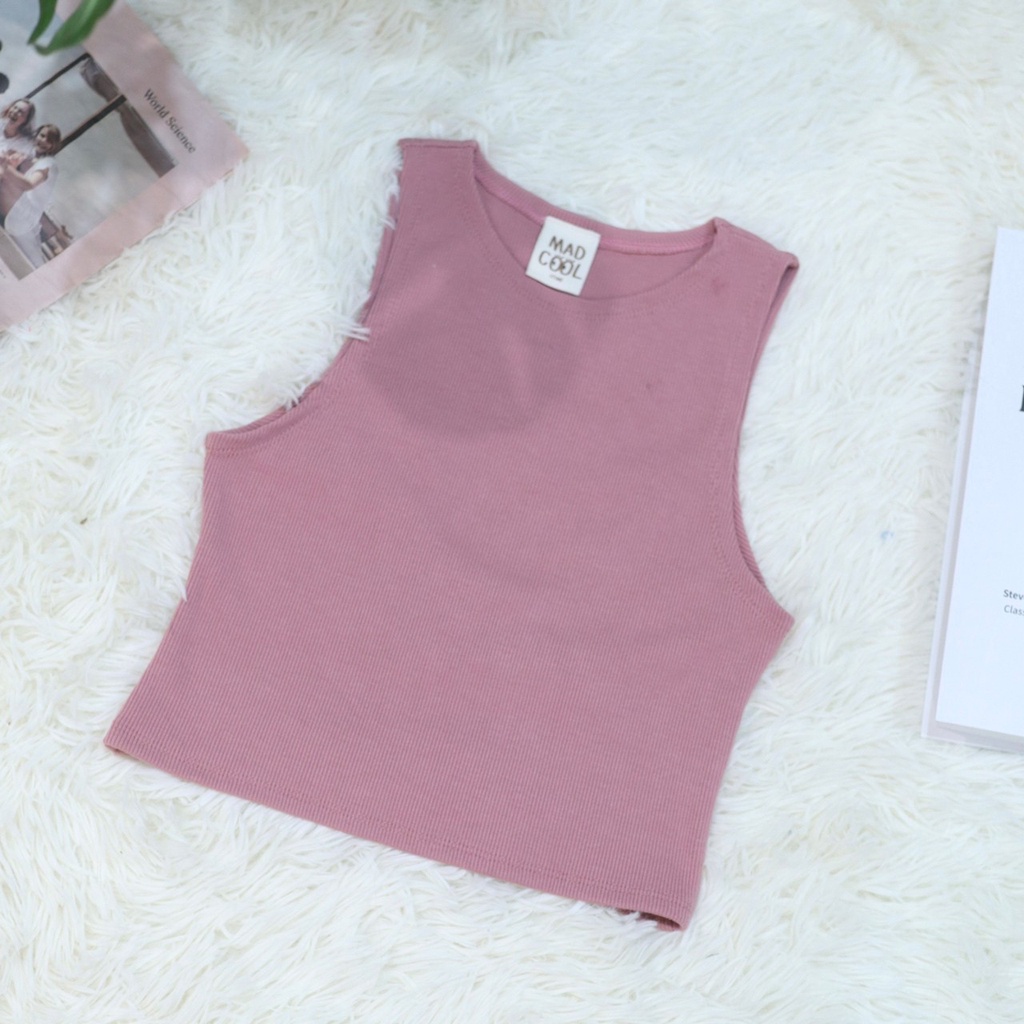 🦖💖 [พร้อมส่ง/ขายส่ง] MADCOOL.store | MC001 เสื้อยืดครอปผ้าร่อง แขนกุด สีพื้น