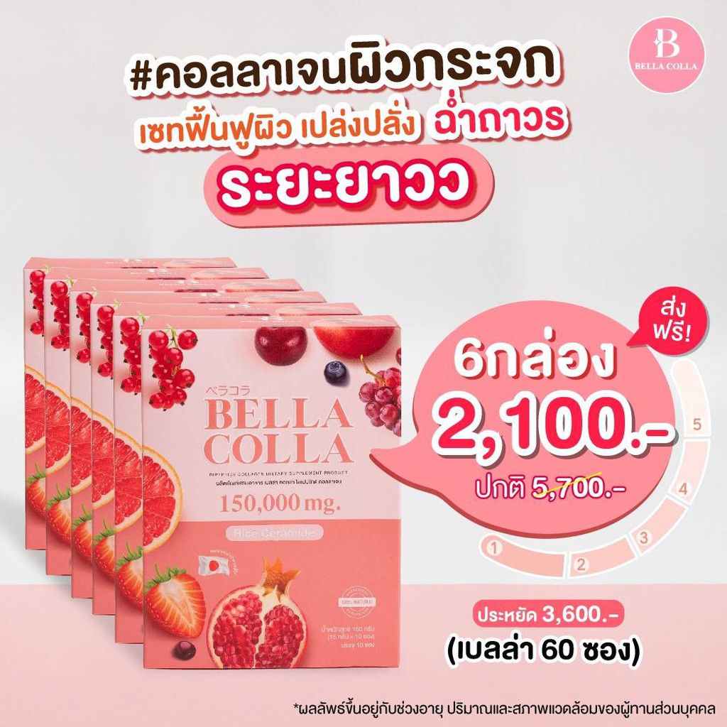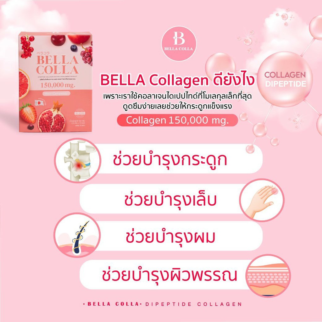 BELLA COLLA คอลลาเจน เบลล่า คลอล่า พรีเมี่ยม คอลลาเจนแท้ 100% จากญี่ปุ่น 150,000 mg