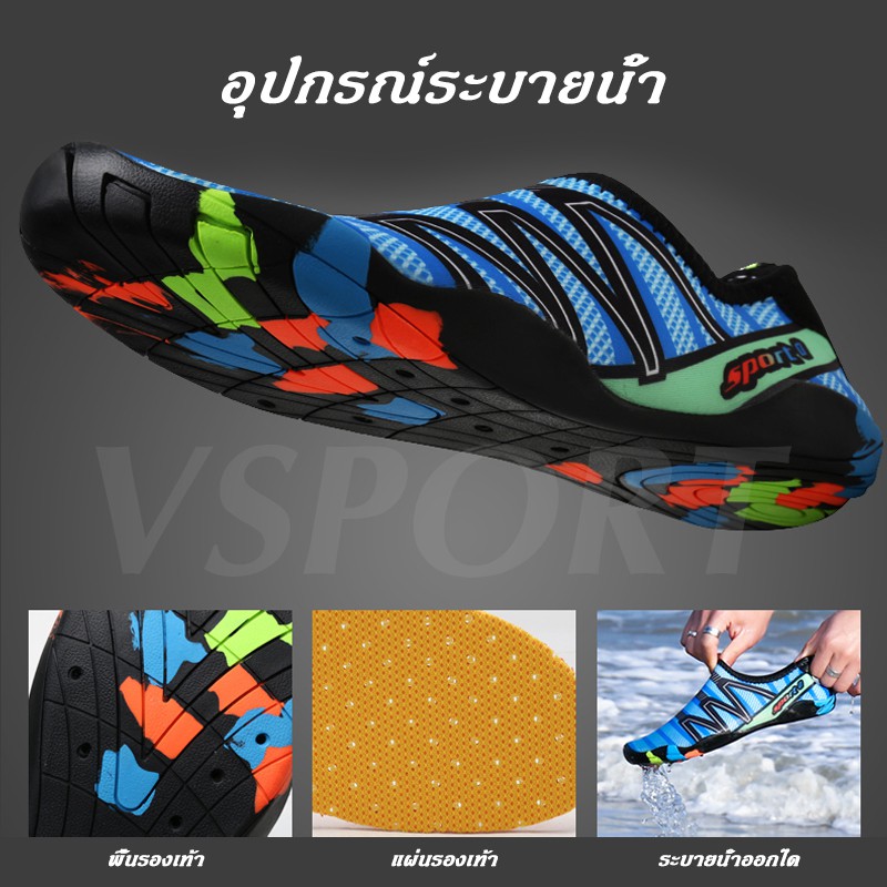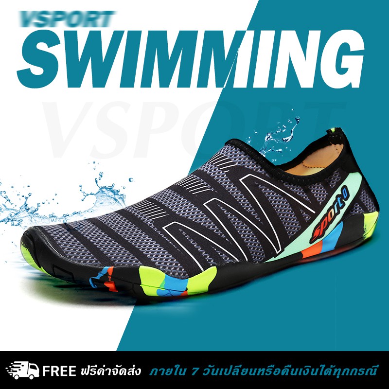 รองเท้าลุยน้ำ รองเท้าเดินชายหาด ใช้ดำน้ำ เดินทะเล ใส่ในวันสบายๆ กระชับเท้า แห้งไว มีสินค้าให้เลือก 4 สี พร้อมส่ง