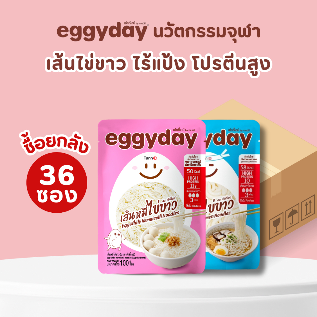 (ยกลัง 36 ซอง) eggyday เส้นโปรตีนไข่ขาว โปรตีนสูง อร่อย ไม่คาว ไร้แป้ง Keto พร้อมทาน ส่งฟรี