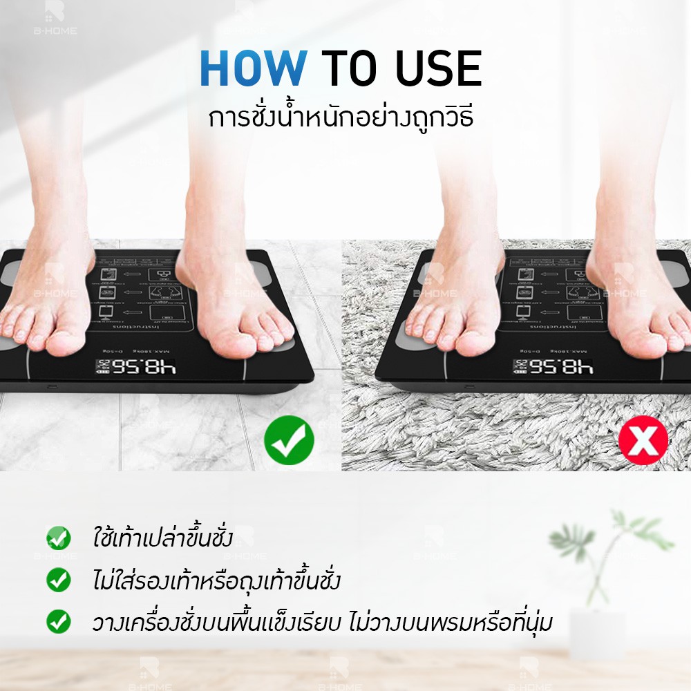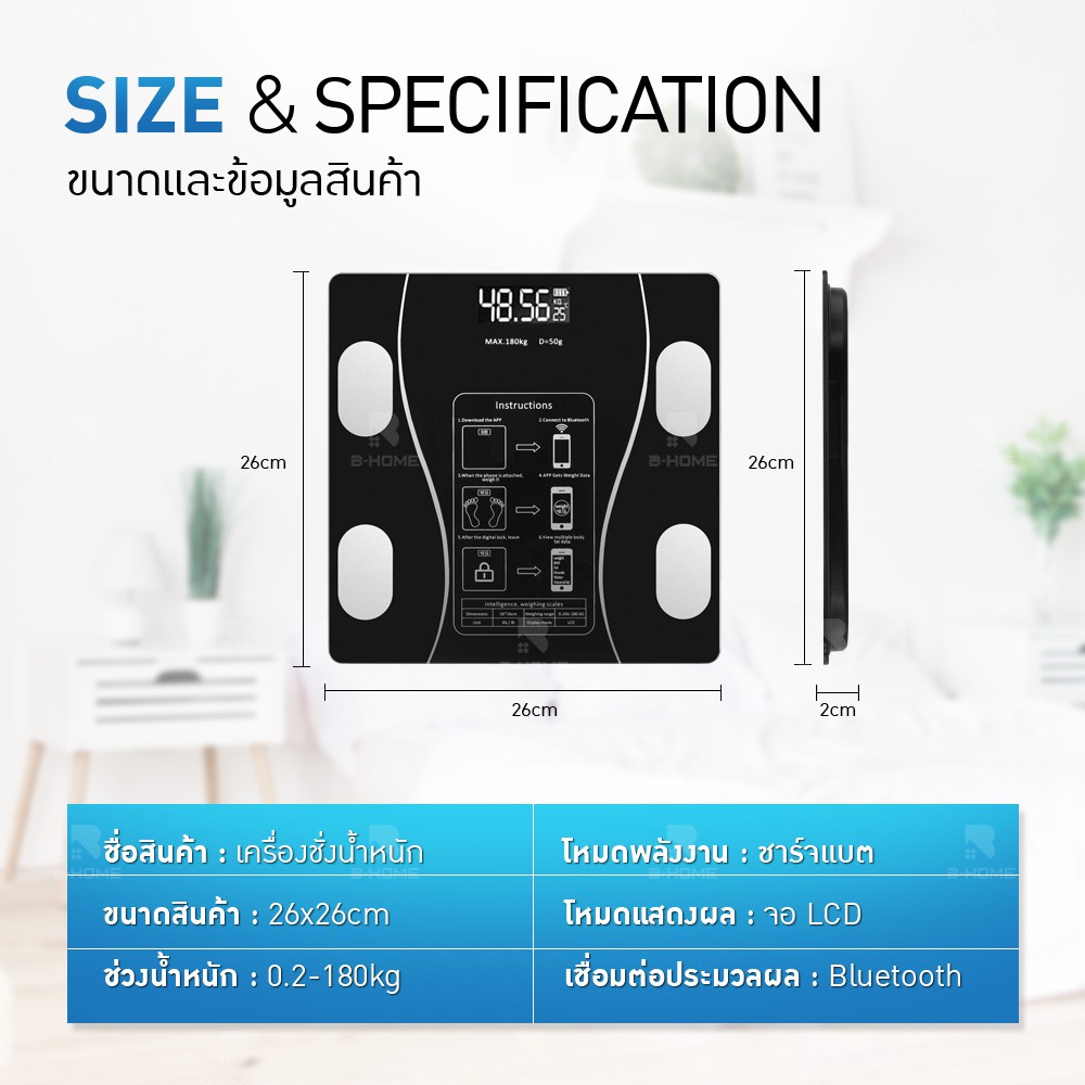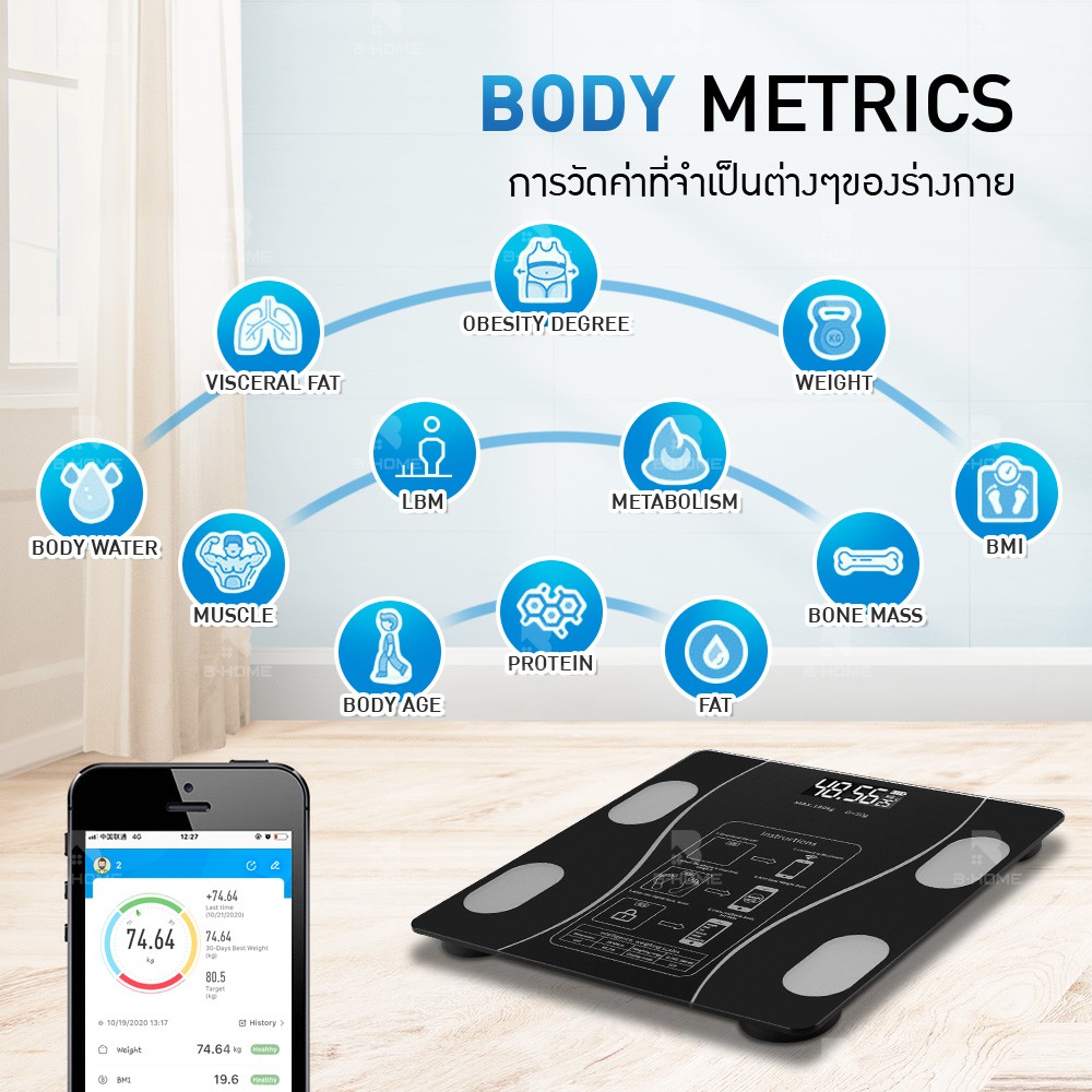 เครื่องชั่งน้ำหนัก digital B-HOME ตาชั่งน้ำหนัก ดิจิตอล กิโลชั่งน้ำหนัก วัดไขมัน อัจฉริยะ Bluetooth