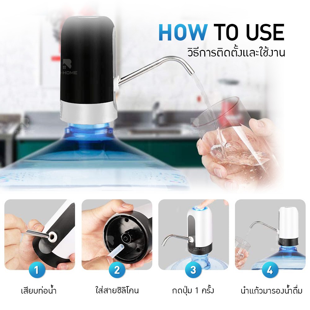 ที่กดน้ ำ ดื่มอัตโนมัติ B-HOME ที่ดูดน้ำ เครื่องปั๊มน้ำ water dispenser หัวกดน้ำ ฟรี!!สายชาร์จ