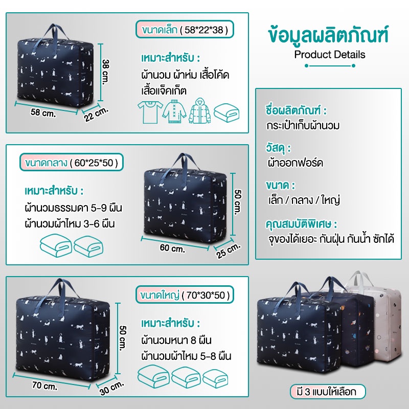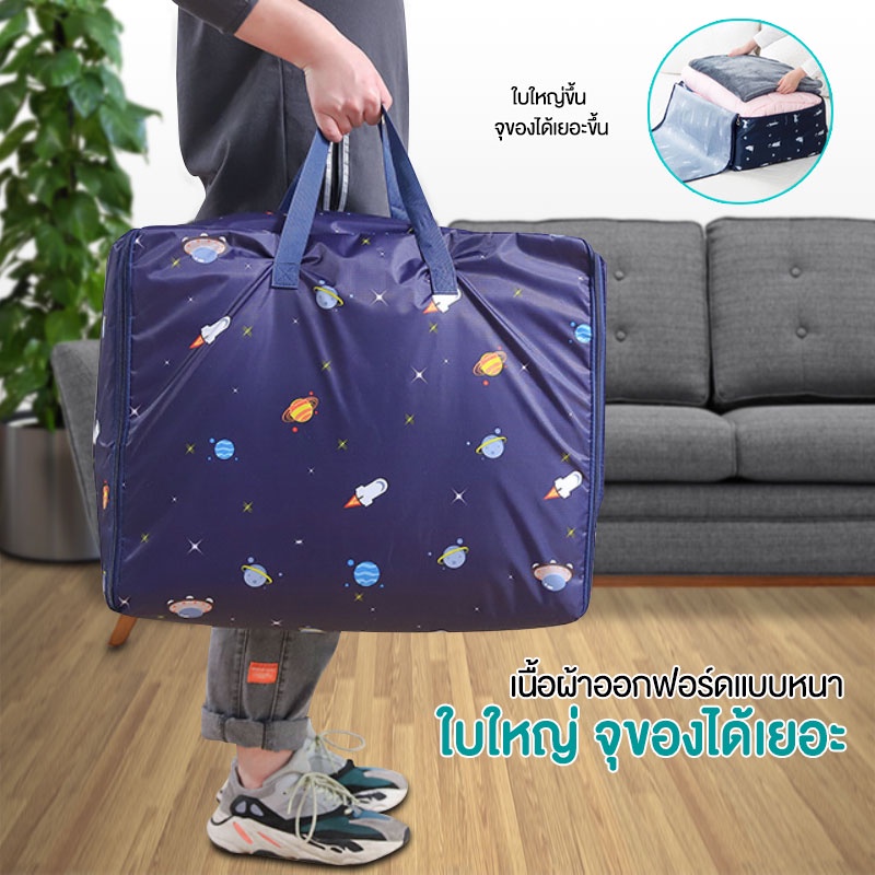 ถุงเก็บผ้านวม มีหูหิ้ว สีทึบ ขนาดใหญ่ ใส่เสื้อผ้า ใส่ผ้าห่ม ผ้านวม จุได้เยอะ#B-048