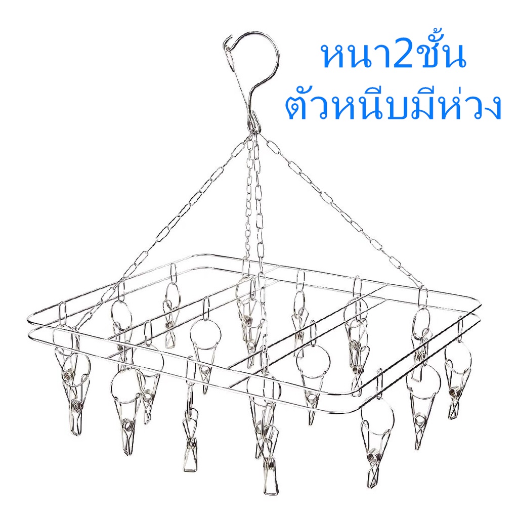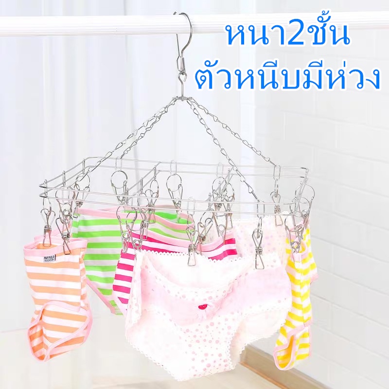 ส่งทุกว ัน จ-ส 😊พวงตากผ้า พวงหนีบ แบบเหลี่ยม สแตนเลส20หนีบ หมุดได้360 ที่หนีบผ้า หนา2.5mm S220 211153 olbighome