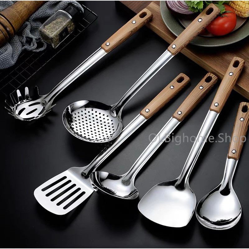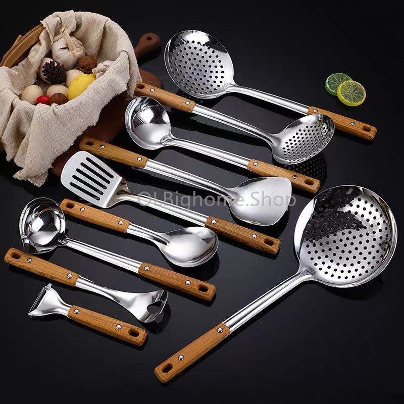 🔥ถูกสุด!!จัดโปร🔥 ตะหลิว ตะหลิวมีรู กระบวย กระชอน ทัพพี กระบวยสุกี้ ชุดทำครัวสแตนเลสแท้🍛ส่งทุกวัน จ-ส😊 40069 olbighome