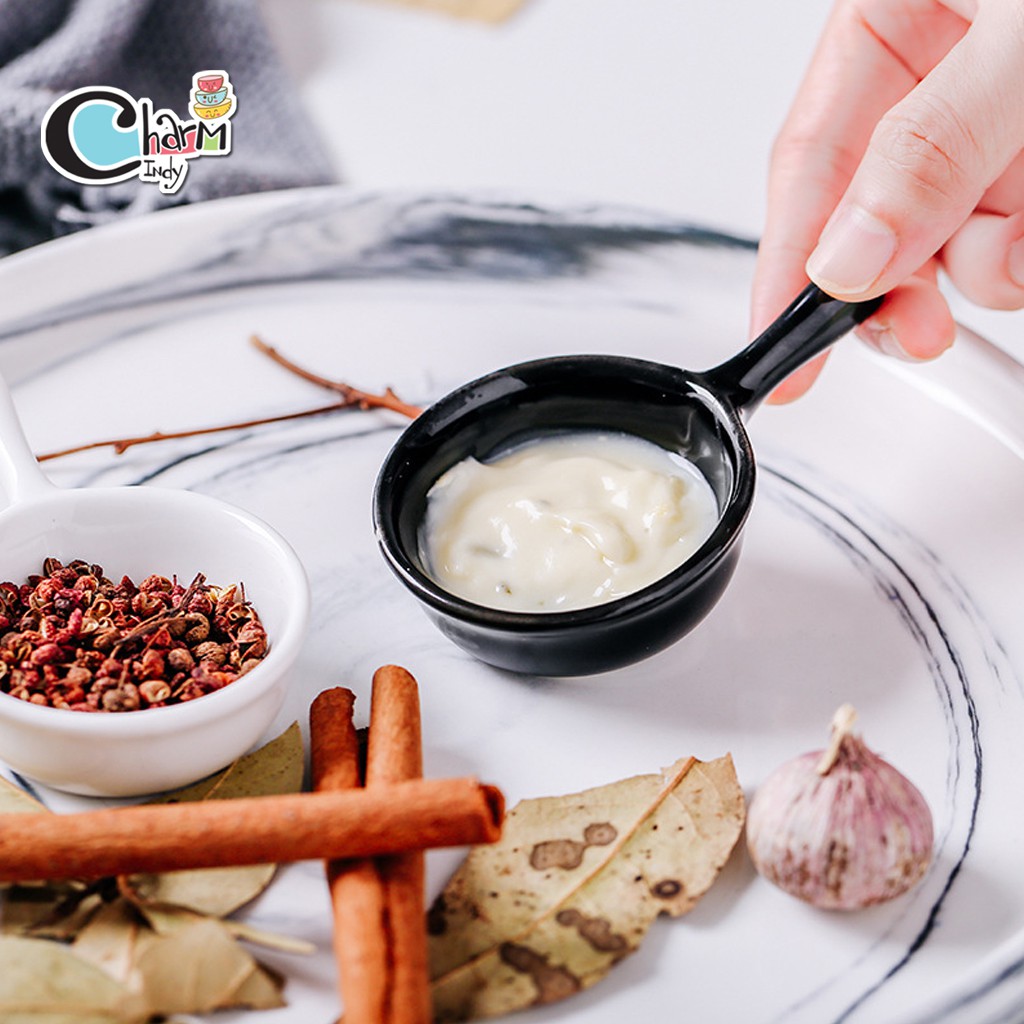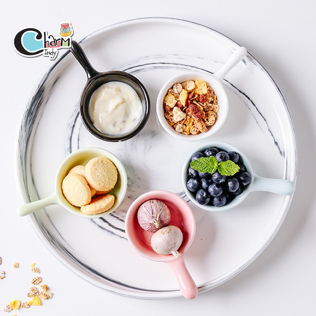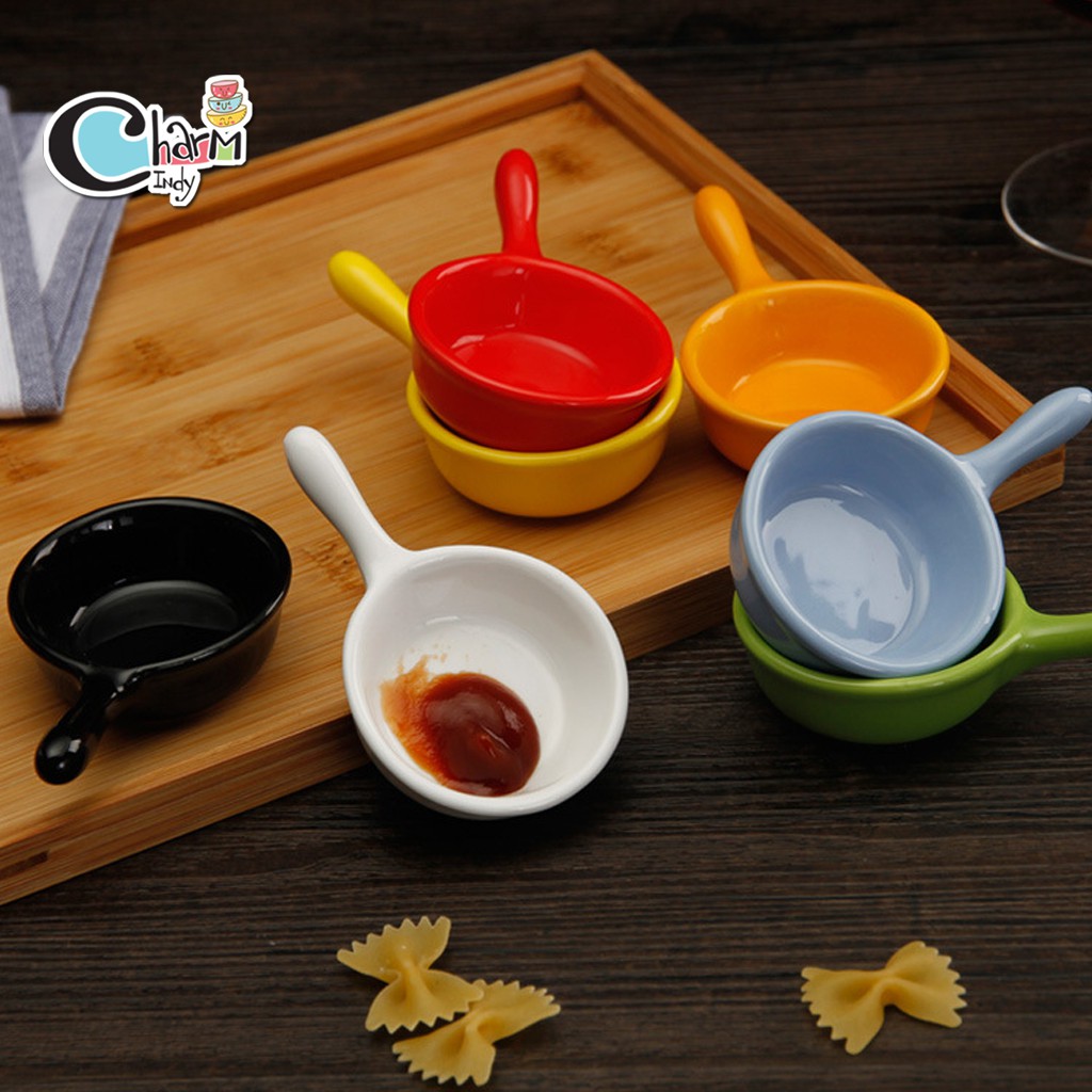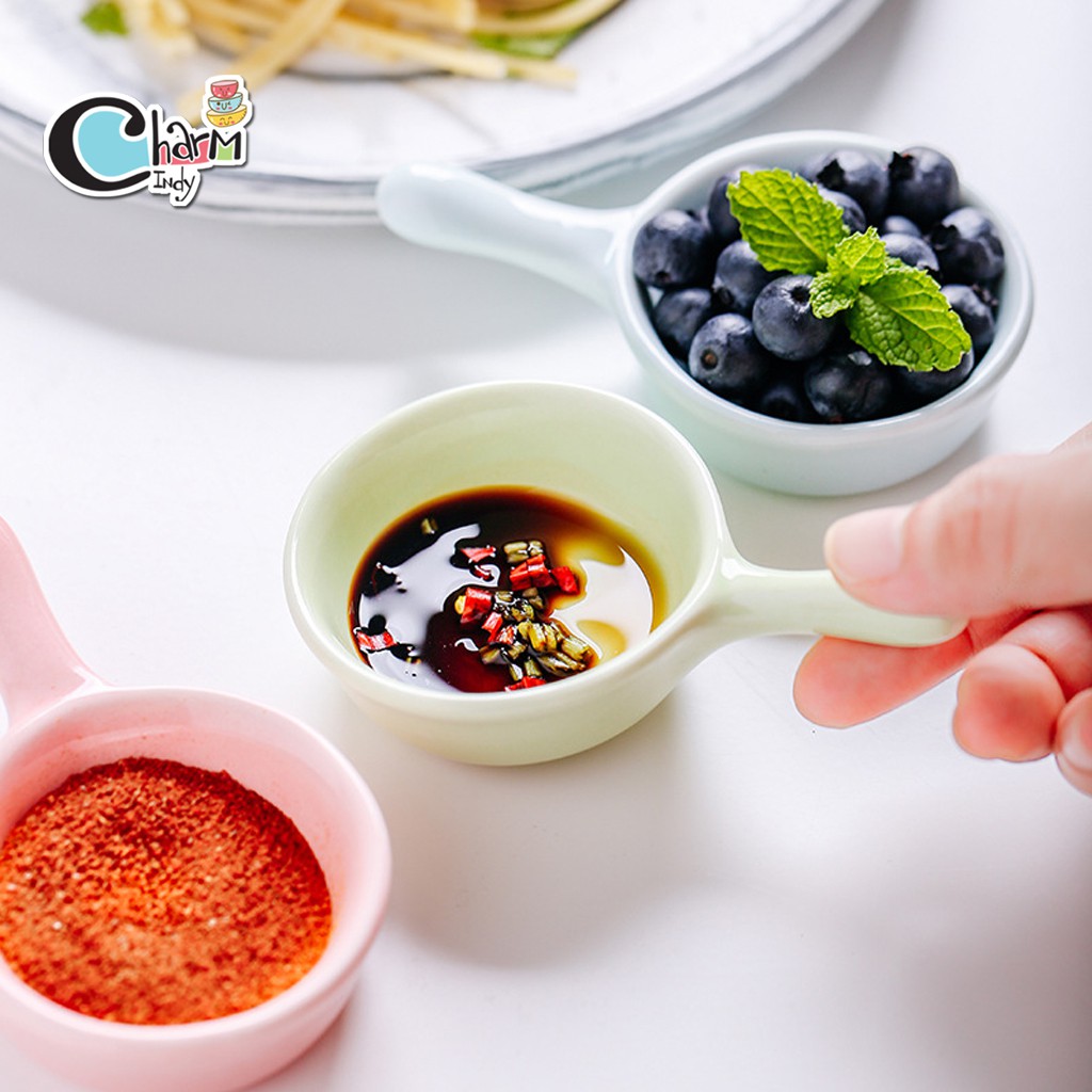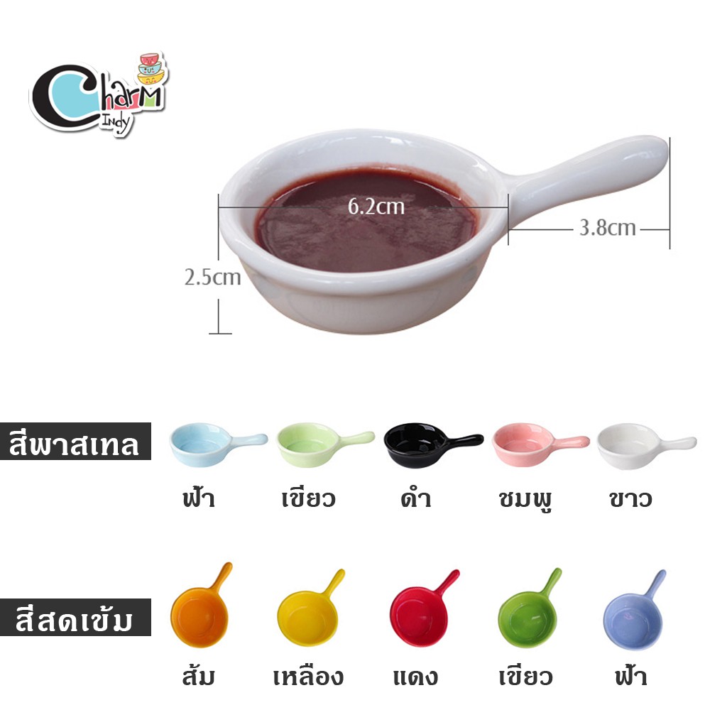 ถ้วยน้ำจิ้ม เซรามิค ใส่ซอส ขนาดเล็ก มีด้ามจับ หลากสี #พร้อมส่ง #charmindy