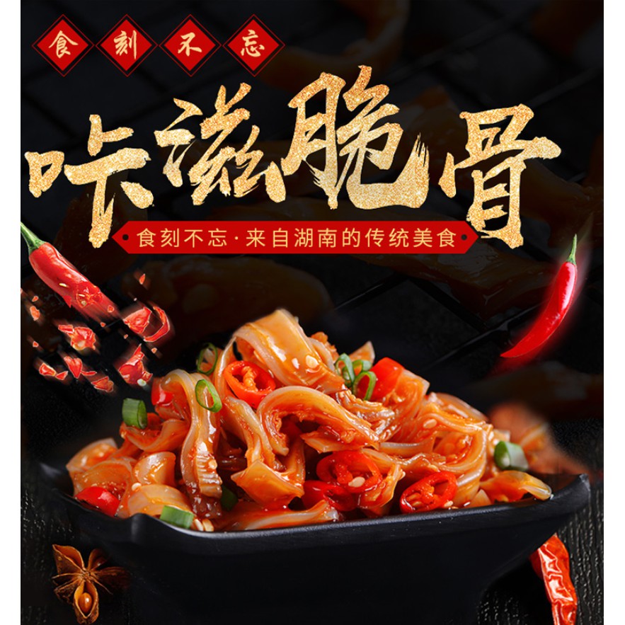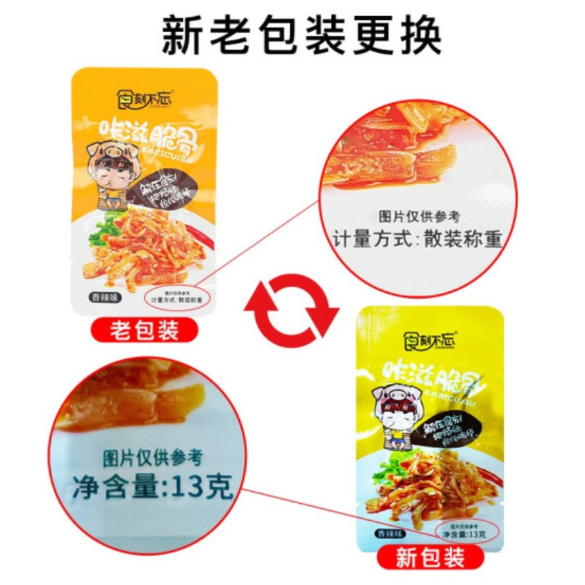 [ลด5% ใส่โค้ด KAROSKP18] กระดูกอ่อนหมูหม่าล่า เคี้ยวกรุบ อร่อยเผ็ดชา 湖南食刻不忘咔滋脆骨 13g
