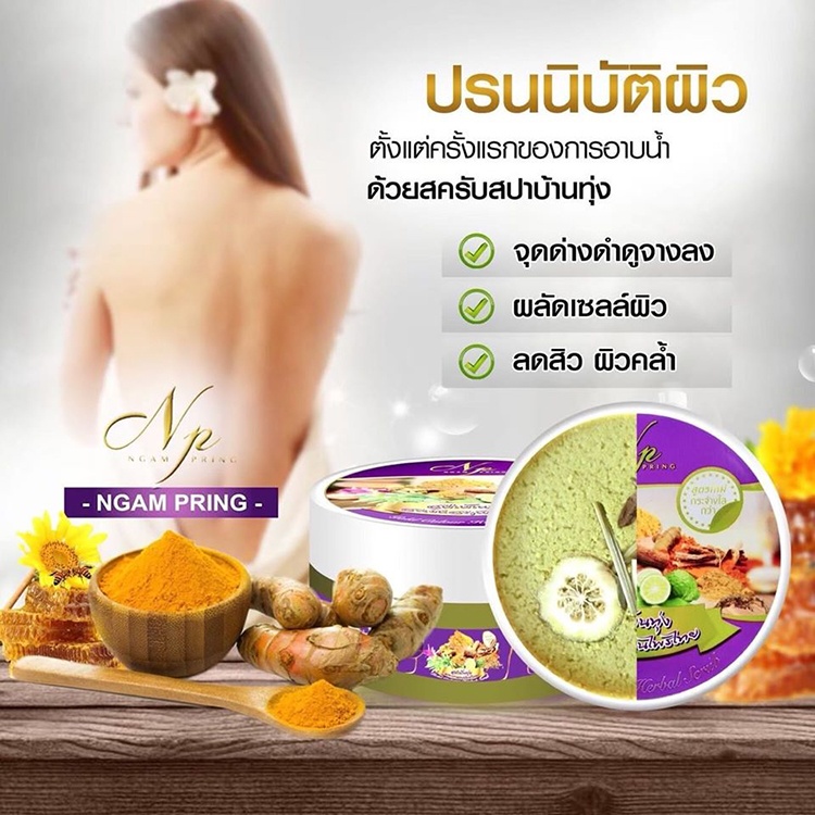 สปาบ้านทุ่ง สครับสมุนไพรไทย Gold Colour Herbal Scrub By งามพริ้ง พร้อมส่ง