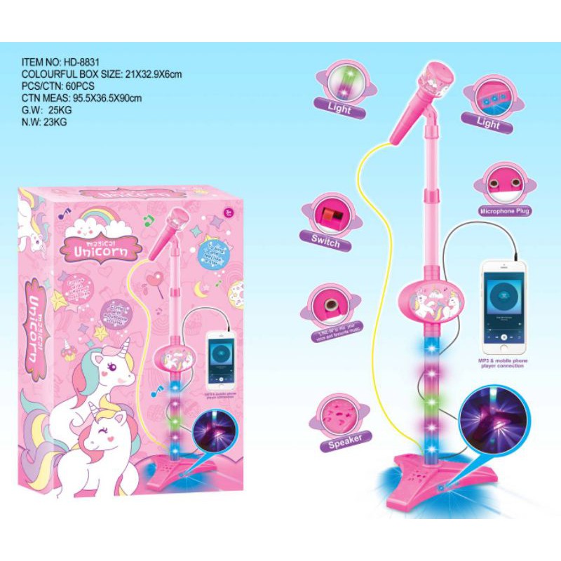 ***พร้อมส่ง***ไมค์โครโฟนเด็กคู่ ม้ายูนิคอนมีเสียงมีไฟHD-8845/8831/8856