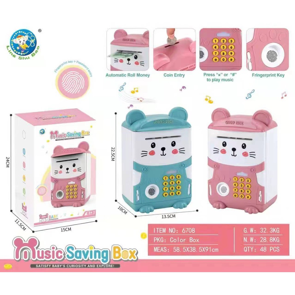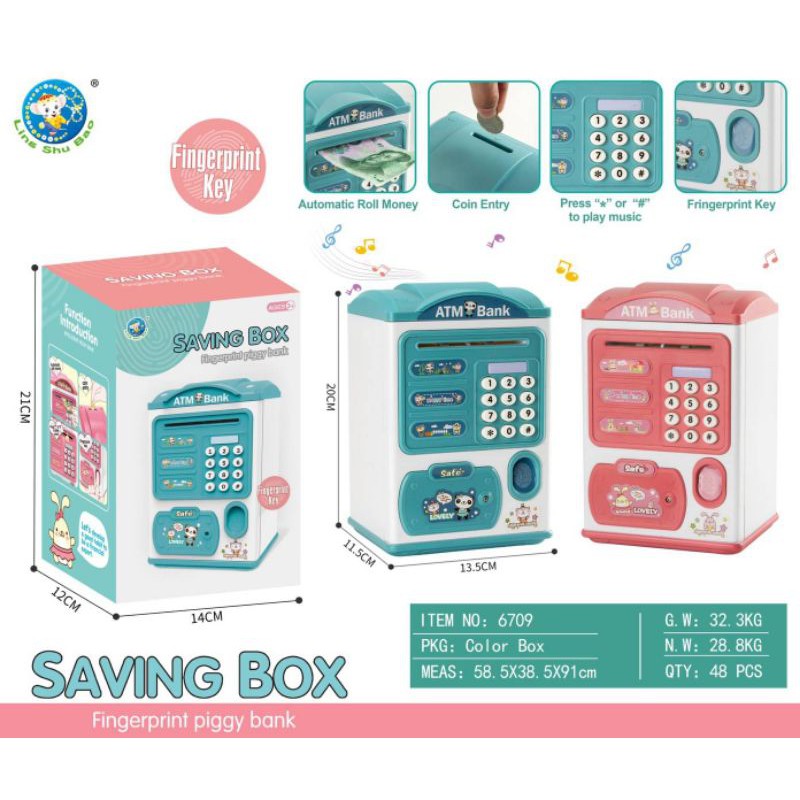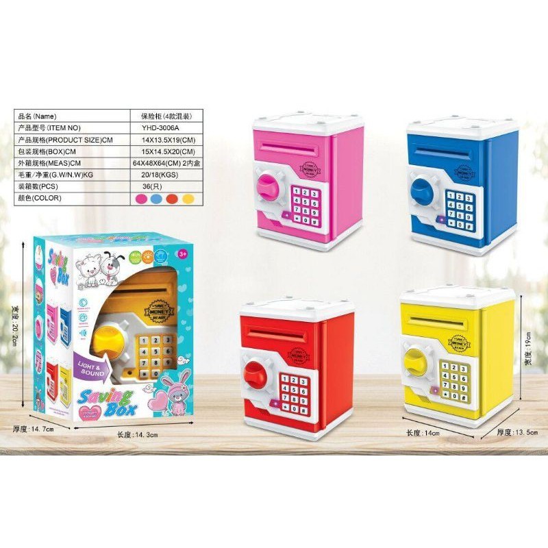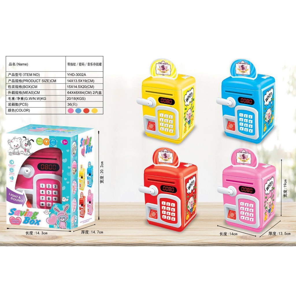 ATMตู้เซฟ​หยอดเหรีญ ดูดแบงค์ ประปุกออมสิน สแกนนิ้วมือได้ มีเสียงเพลง ภาษาจีน-อังกฤษ เปลี่ยนรหัสผ่านได้ กระปุกออมสิน