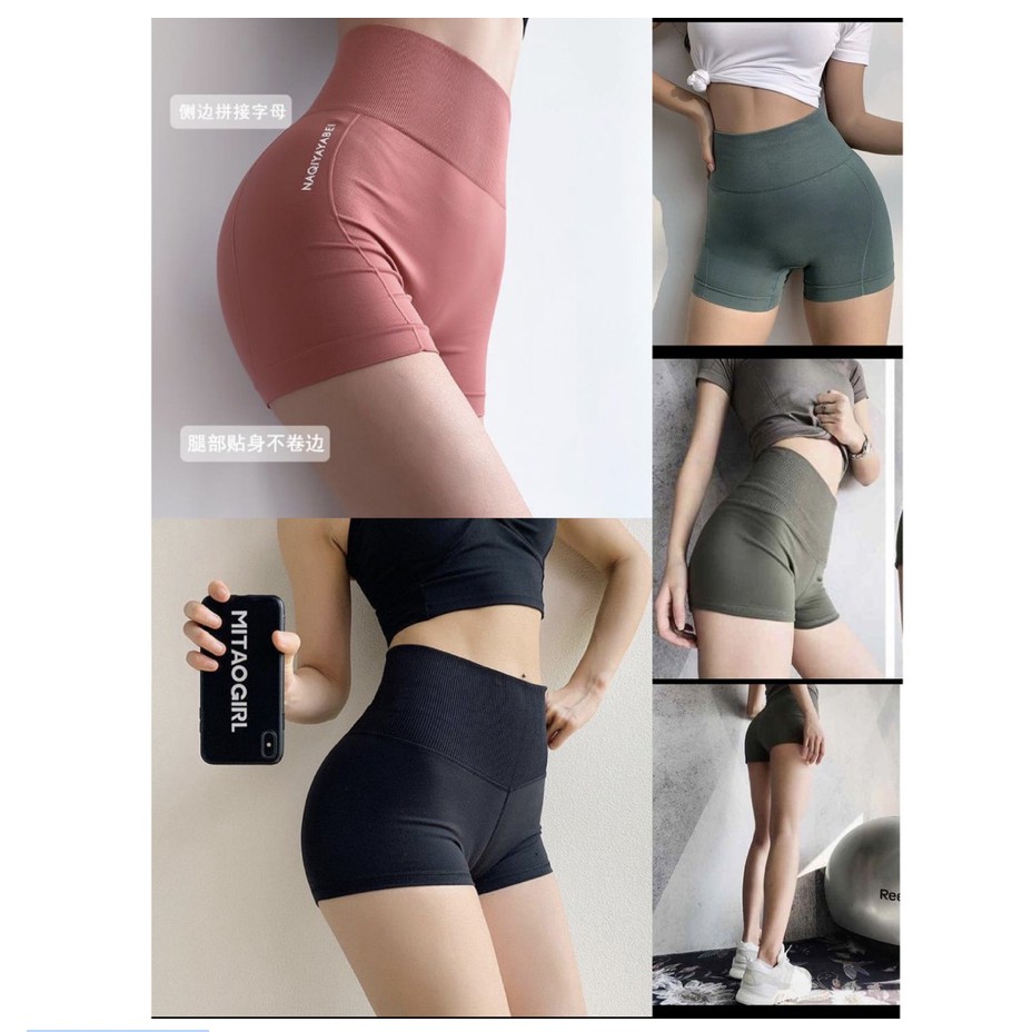 Pretty Bra PB-401 กางเกงออกกำลังกายขาสั้น กางเกงโยคะ เอวสูง