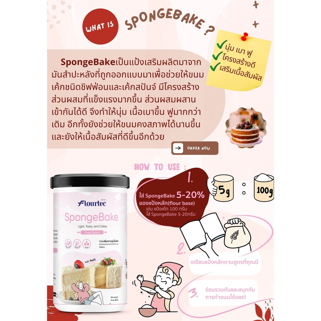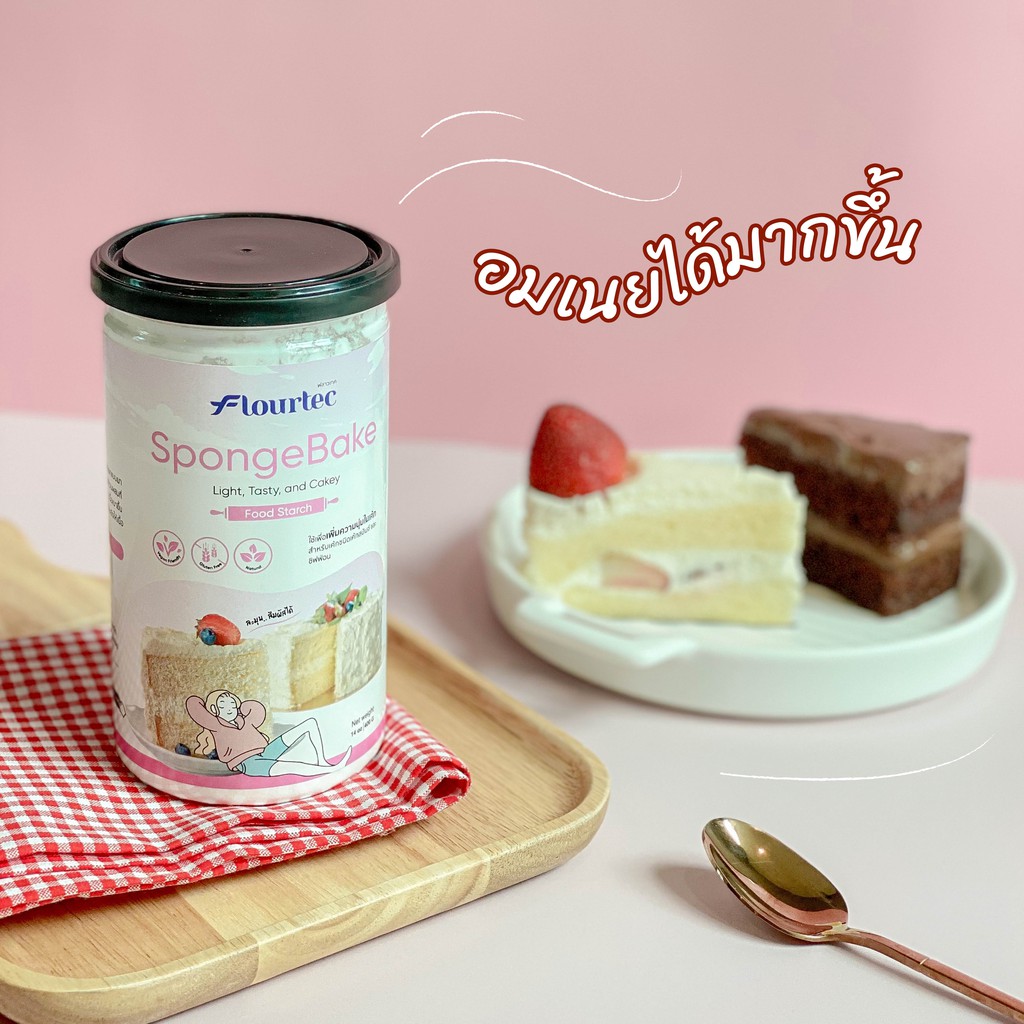 1 แถม 1 ! SpongeBake แป้งเพิ่มความนุ่มเค้กชิฟฟ่อน สปันจ์ ฟรี ! แป้งเค้กพรีเมี่ยม ขนาด 300 กรัม