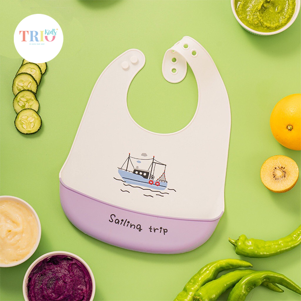 [ ส่งทุกวัน ] ผ้ากันเปื้อนเด็ก ซิลิโคน ถาดกันเปื้อน มีถาดรองเศษอาหาร ปรับได้ 6 ระดับ