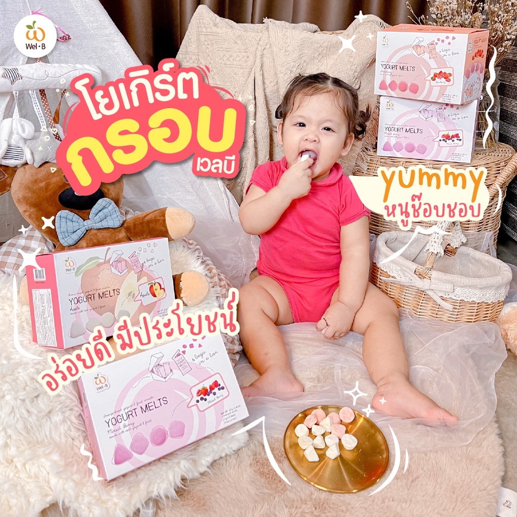 Wel-B Yogurt Melts Apple 42g. (โยเกิร์ตกรอบ แอปเปิล 42 กรัม) - ขนมเด็ก โยเกิร์ตกรอบ