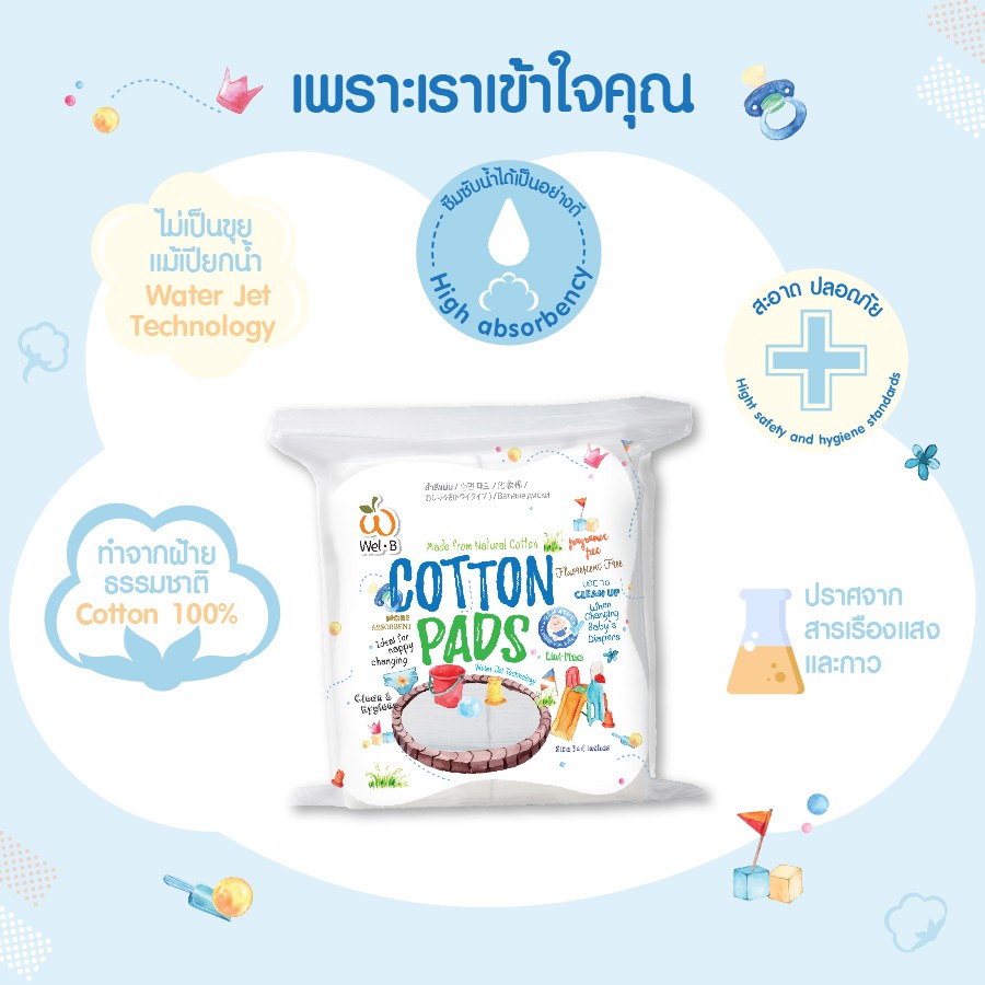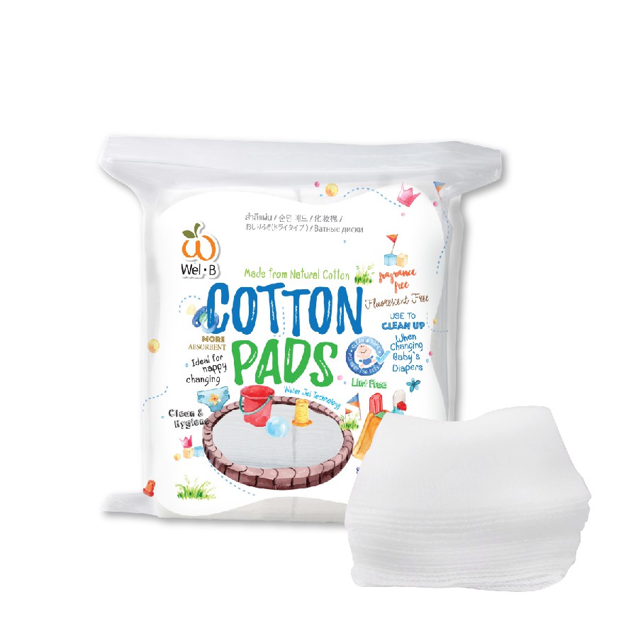 Wel-B Cotton Pads 130g (เวลบี สำลีแผ่นขนาด 3x4 นิ้ว, 90 แ ผ่น) (แพ็ค 2 ซอง) - สำลี สำหรับเด็ก
