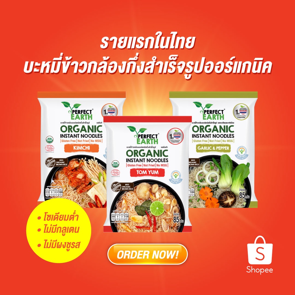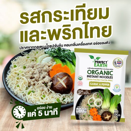 Perfect Earth บะหมี่ข้าวกล้องออร์แกนิคกึ่งสำเร็จรูป รสกระเทียมและพริกไทย 85 กรัม