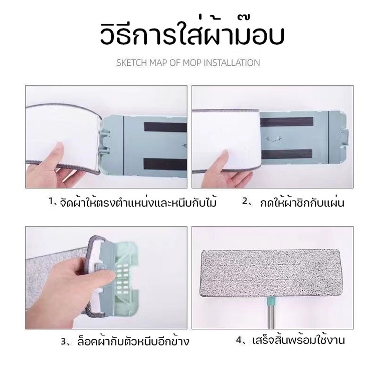 ผ้าสำหรับเปลี่ยนไม้ถูพื้น แบบไมโครไฟเบอร์ Micro Mop อะไหล่ สีเหลี่ยม