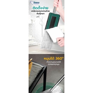 ไม้ถูพื้น ถังปั่น Flat Mop ไม้ม๊อบพร้อมถังรีดน้ำ ซักน้ำและรีดน้ำในตัวเดียว ไม่เลอะมือ - ถังใหญ่ 2 สีให้เลือก