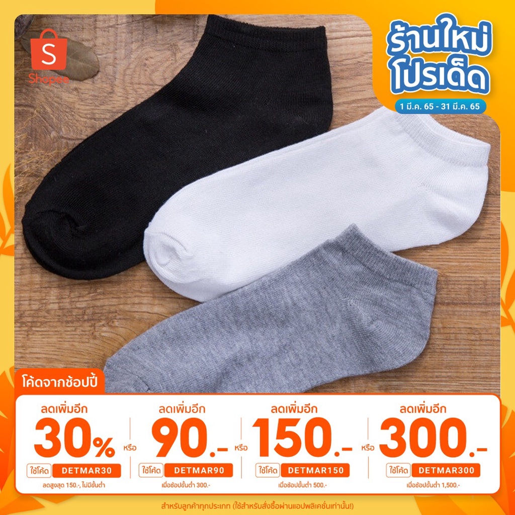 ถุงเท้าข้อสั้น สีพื้น เนื้อผ้าคอตตอนอย่างดี นุ่มสบาย ระบายอากาศ ไม่อับชื้น ไม่ส่งกลิ่นเหม็น ฟรีไซส์ (W-006)