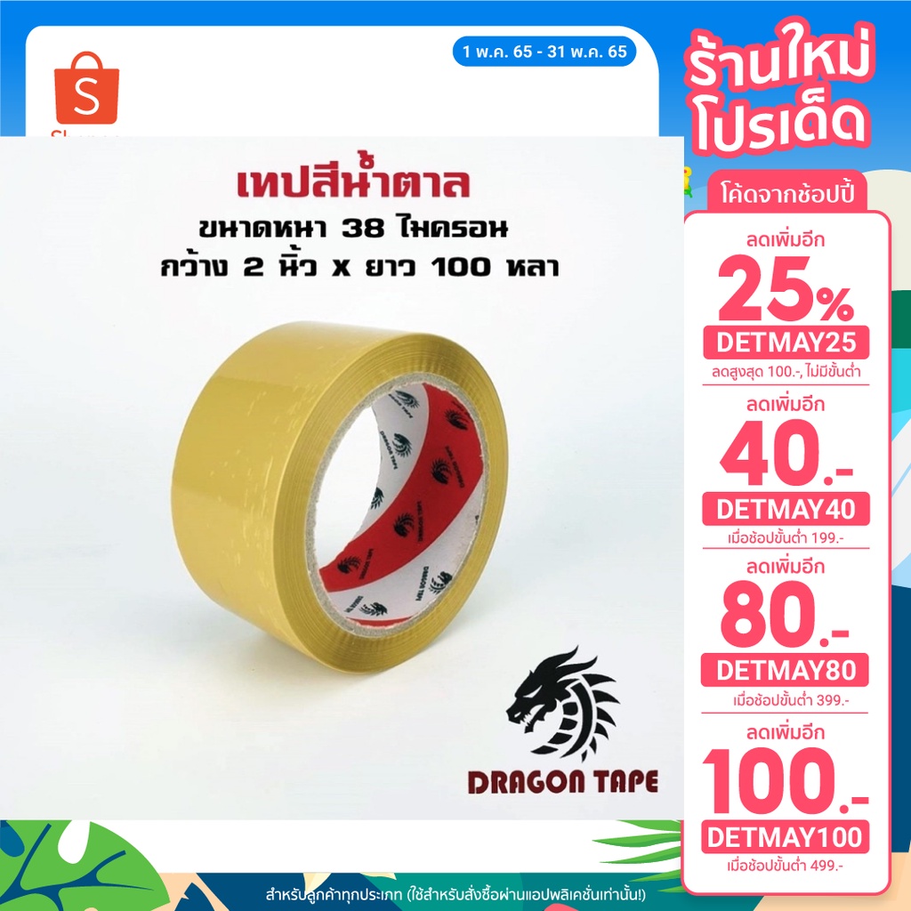 🔥เหลือ 17.- ใส่โค้ด DETMAY25🔥 เทปยาว 100 หลา กว้าง2นิ้ว