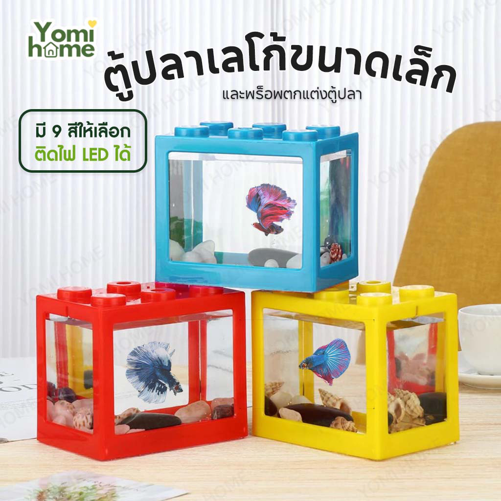 Yomihome ตู้ปลาเลโก้ ตู้ปลาขนาดเล็ก เลี้ยงปลากัด ปลาขนาดเล็ก มีให้เลือก 9 สี / ไฟ led สำหรับตู้ปลาเลโก