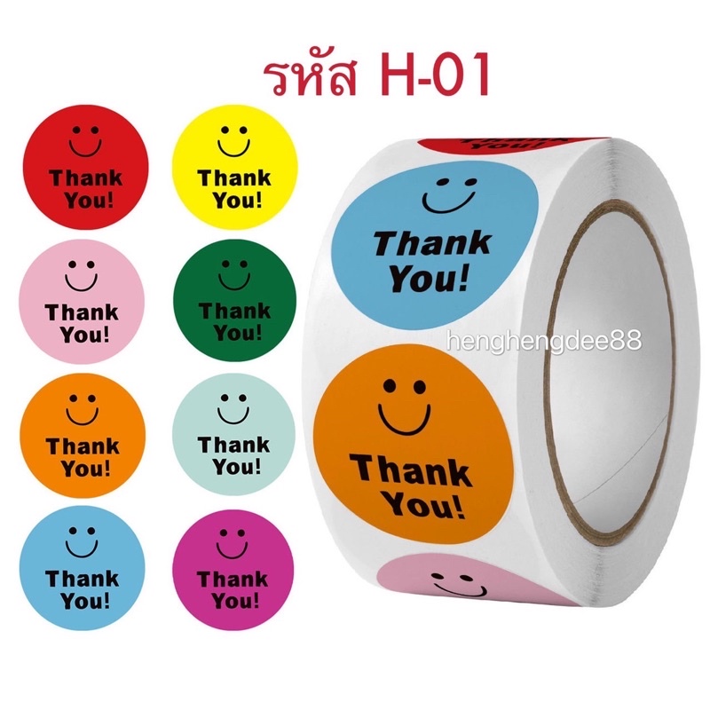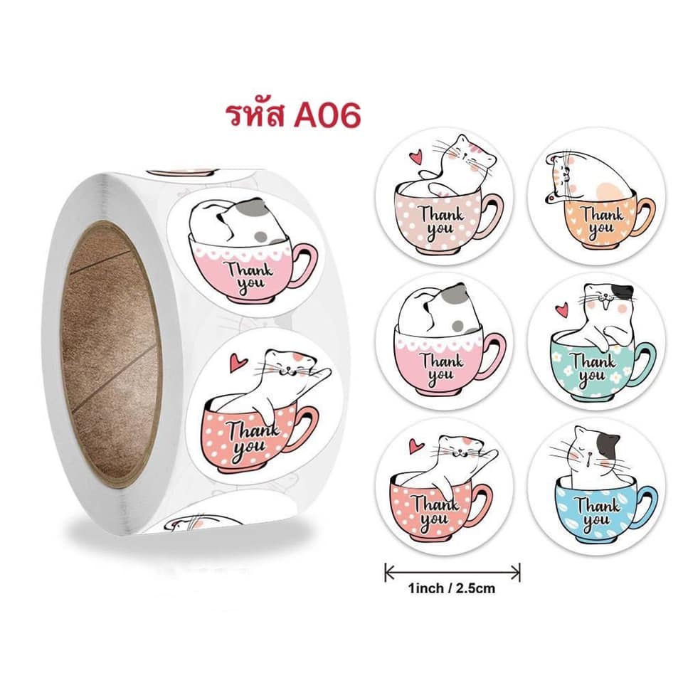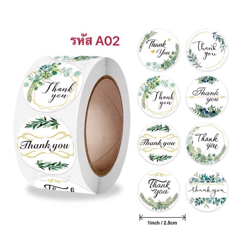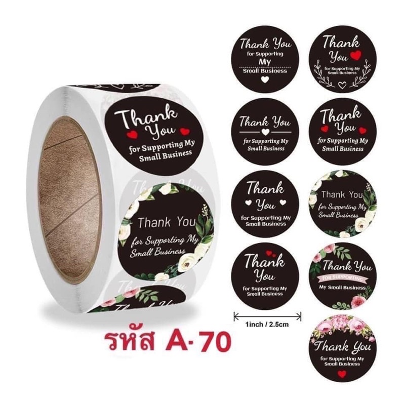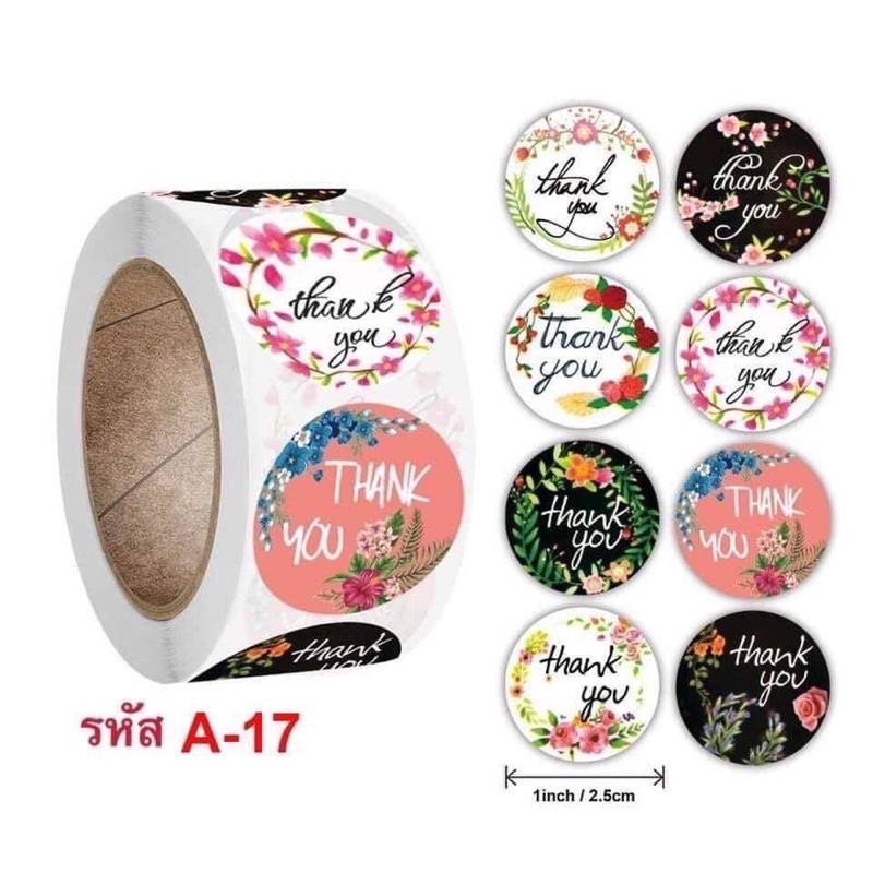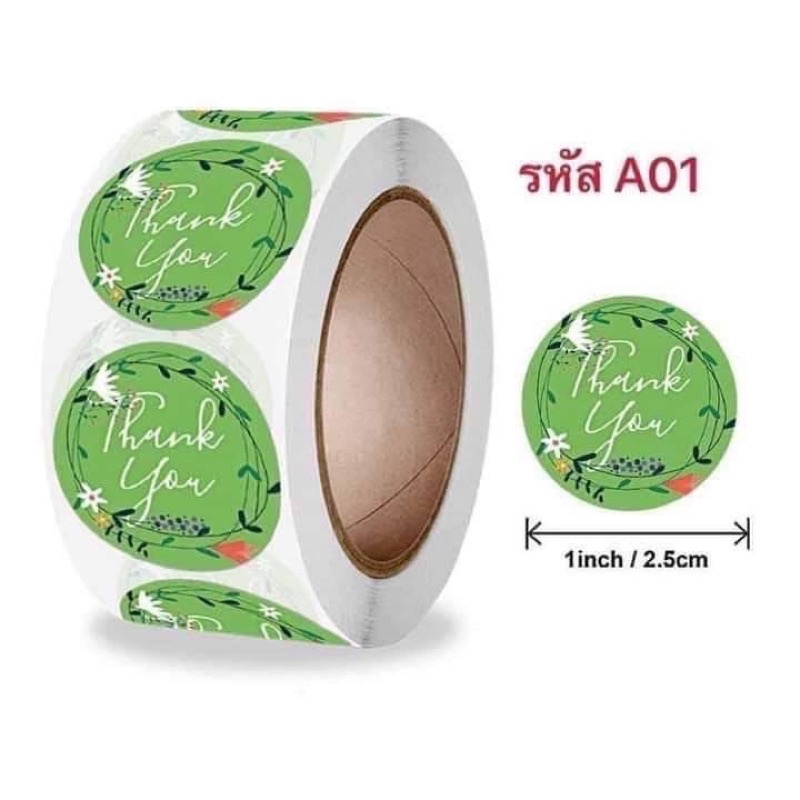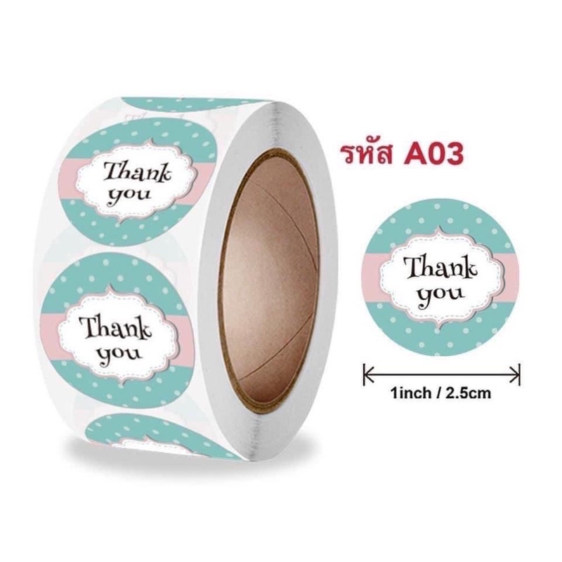 สติ๊กเกอร์ Thank you 1 ม้วน "500" ดวง ขนาด 2.5 cm. การันตีถูกที่สุด!!!