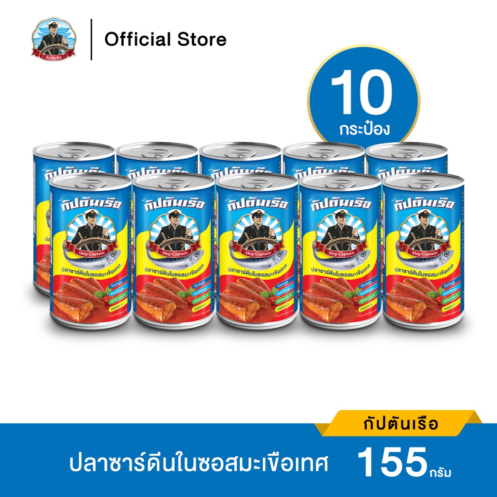 [จัดส่งเร็ว] กัปตันเรือ ปลาซาร์ดีน เนื้อแน่นในซอสมะเขือเทศ ขนาด 155 กรัม (แพ็ค 10 กระป๋อง)