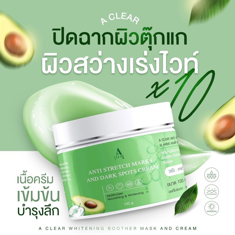 1 แถม 1 A clear cream เอเคลียร์ครีม ลดรอยแตกลาย ผิวไม่สม่ำเสมอ 💚