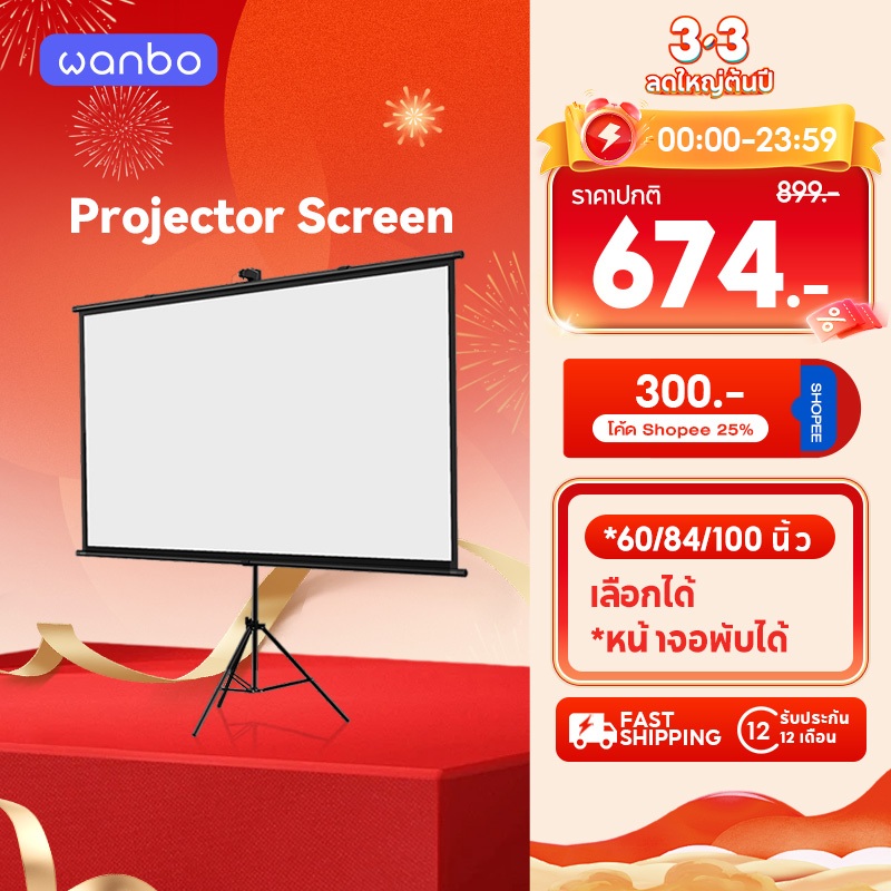 Wanbo Projector Screen จอโปรเจคเตอร์ จอรับภาพ 4K แบบตั้งพื้น แขวนผนัง