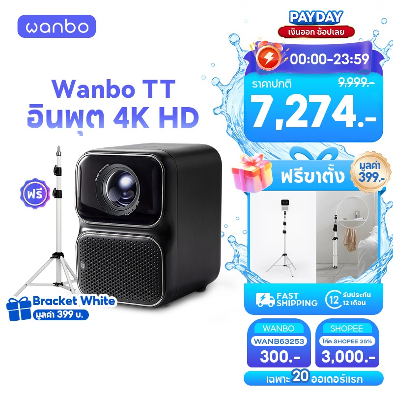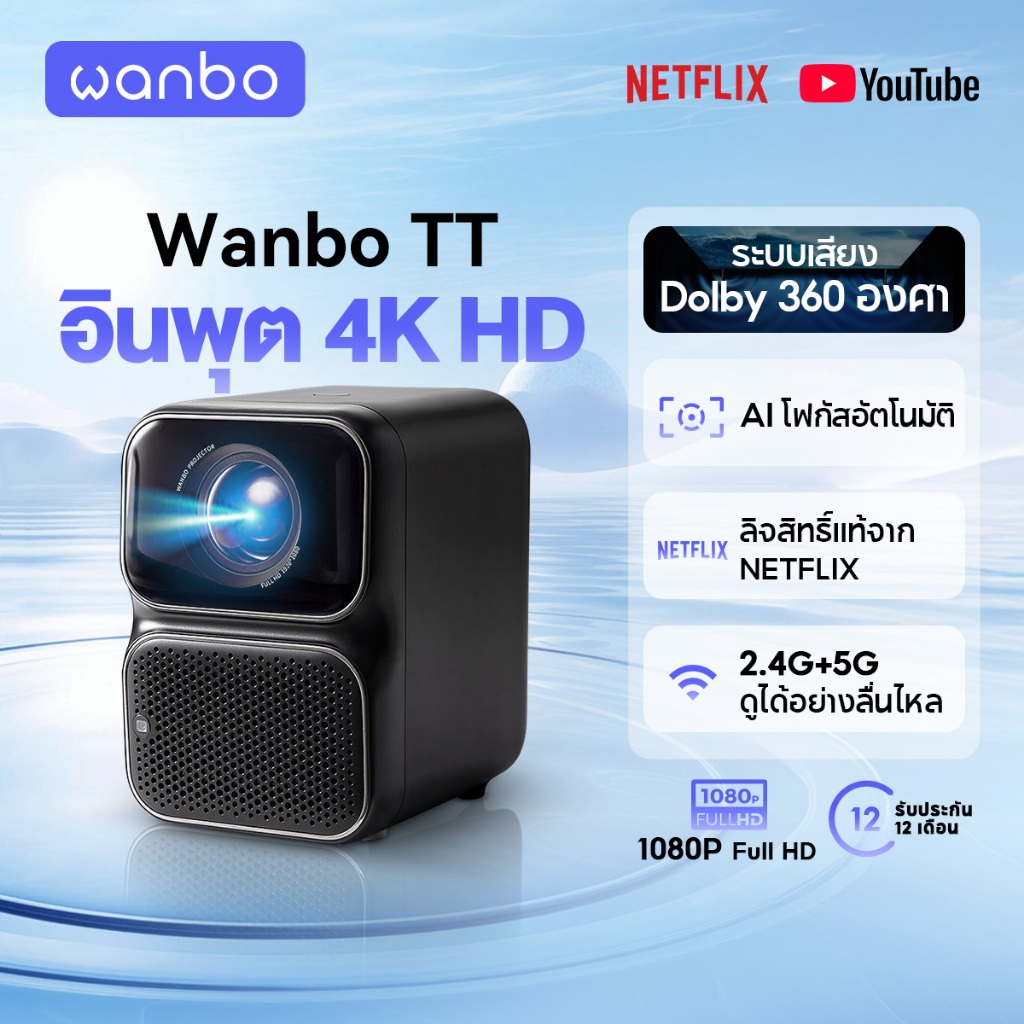 Wanbo TT Projector 4K HD โปรเจคเตอร์ โปรเจคเตอร์พกพา โฟกัสอัตโนมัติ ลิขสิทธิ์แท้จาก NETFLIX 360° Dolby Sound Effect