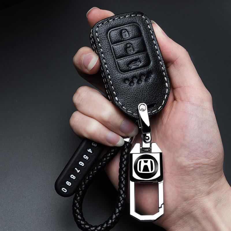 เคสกุญแจรีโมทรถยนต์ สำหรับ honda hrv jazz brv crv city accord civic genuine leather
