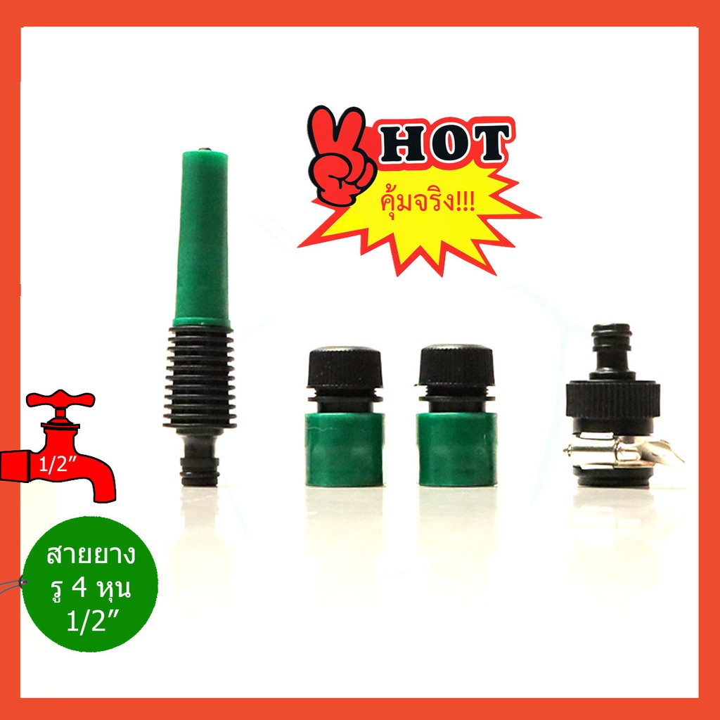 ชุดข้อต่อสายยาง4หุน สำหรับก็อกบอล ก็อกสนามที่มีหางปลาไหล พร้อมหัวฉีดน้ำและข้อต่อก๊อกน้ำ [HCTSN-12-1]