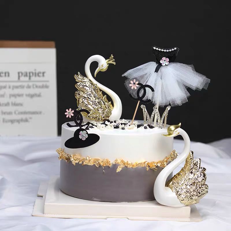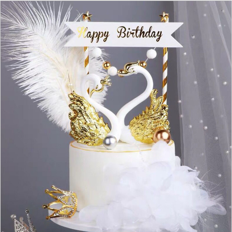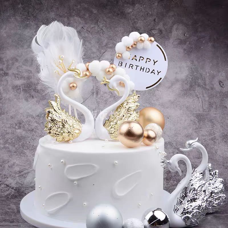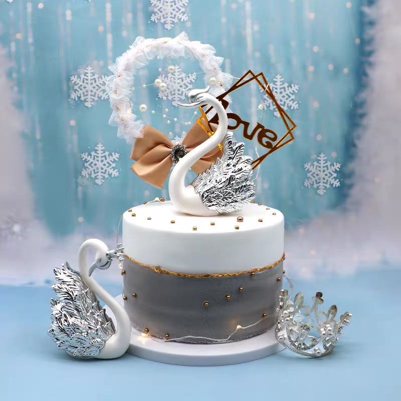 ตุ๊กตาหงส์คู่ สำหรับตกแต่งเค้ก 2 ชิ้น