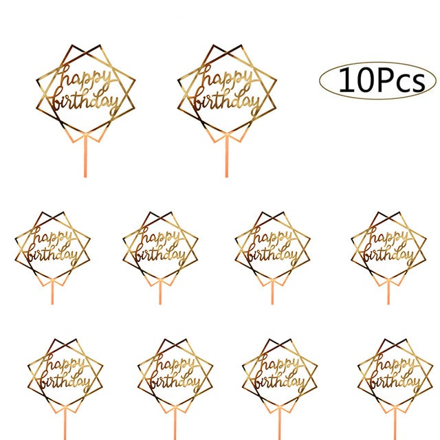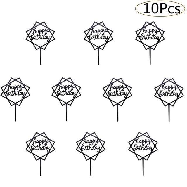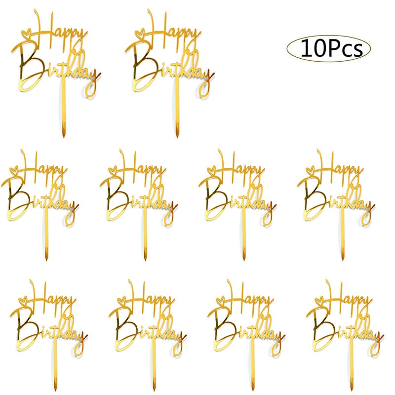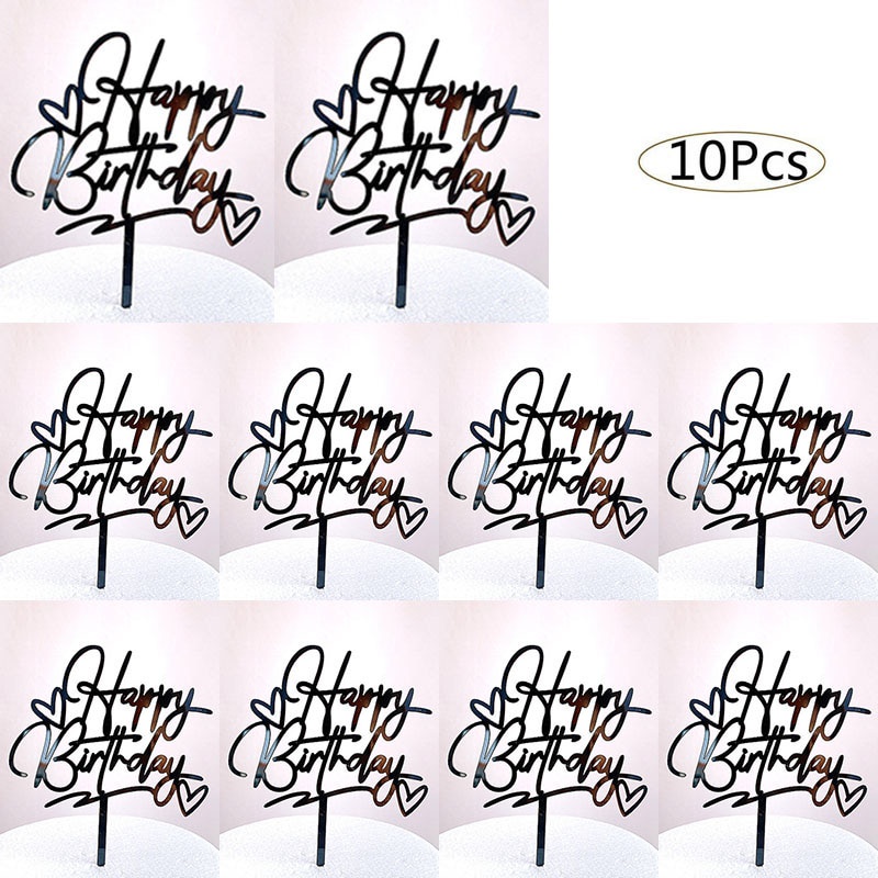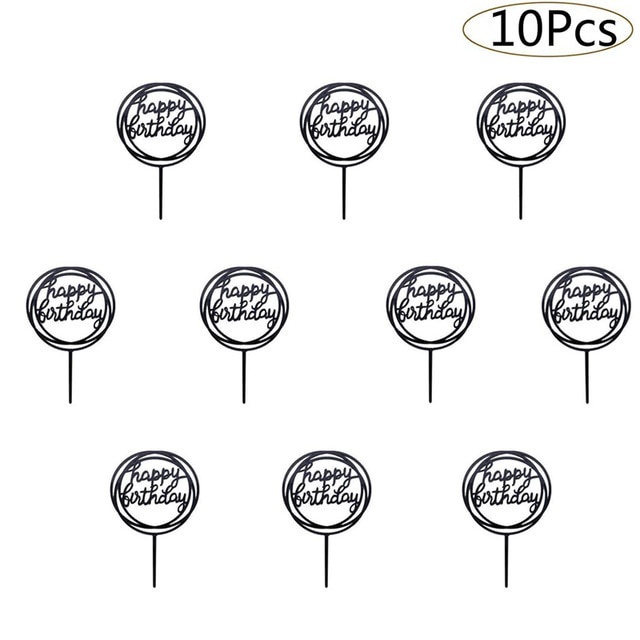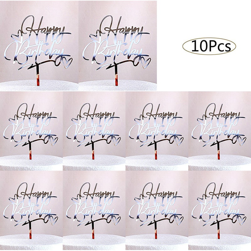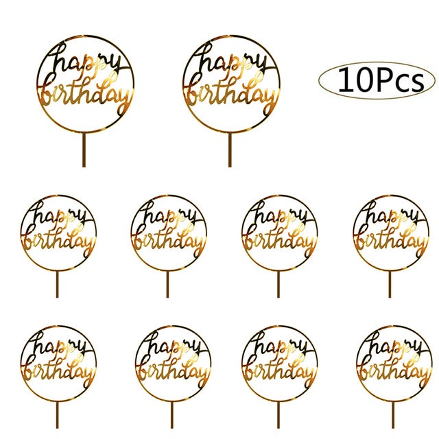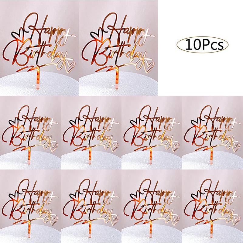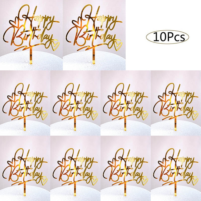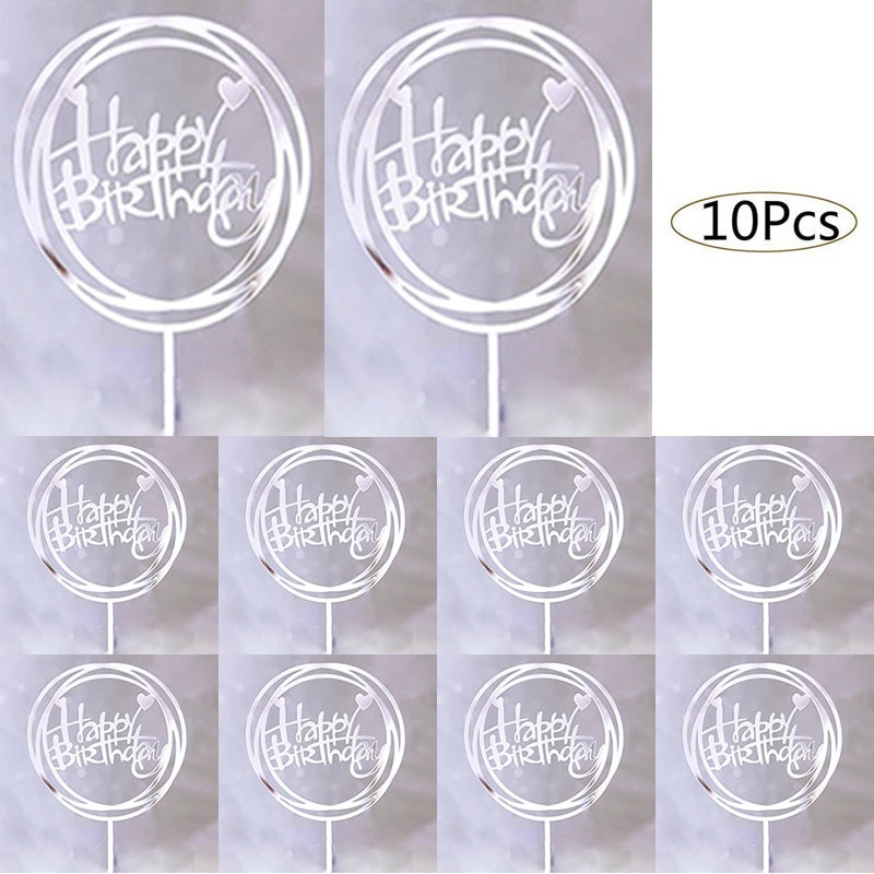 10ชิ้นอะคริลิเค้กวันเกิดเย็บปักถักร้อยตราสุขสันต์วันเกิดเค้ก ที บน